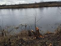 В понедельник поехал на Вяллю. Знакомые бобры заранее подготовили местечко для рыбалки и дрова для ночного костра. Здесь и остановился. С утра походил со спиннингом, потом час посидел с живцовкой – полный ноль. Виной тому, конечно, не кривые ручки рыбака, а высокий уровень воды, сильное течение и новолуние J. Встретил спиннингуя – у него тоже зеро. Решил перебраться...