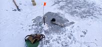 ..На лёд выходил по светлому. Недалече припарковались три машины, уже не один. Лёд, обращаю особое внимание на слово, в тех местах шикарный....