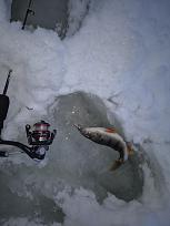 ..Лёд местами хороший, а местами каша, сверлишь, пару оборотов и гейзером вода из лунки, были места, где и трещало. В этот раз пешню не брал, бур и палка-проверялка. В общем, нужен хороший мороз чтобы вся эта каша на льду и под снегом замёрзла, а 4-5 градусов не спасает, снег не даёт промёрзнуть.