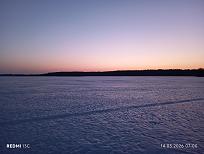 15.03.26 Лукомское. Лёд отличный. Утренние заморозки держат лёд в тонусе до обеда, потом белый слой размякает. Сегодня, кстати, тоже морозник хороший был. Поэтому ещё пара-тройка дней уверенных есть.