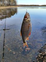 Имеется в количестве, по траве ещё мелковат, а поглубже где, по дну по чистому, - там шитик уже по своей упи́танности, - бройлерный достаточно.