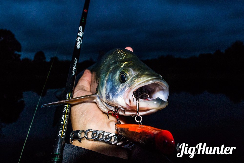 Немного запасы силикона иссякли, поэтому взялся за воблера. Оснастил легкую палочку ренигадовским фреимом и начал его дальше изучать. В процессе извращений выяснил, что при ловле толстым флюром, без заводного кольца и застежки, как я люблю, без рапаловского узла никуда – отличная тема. А правдивость моих умозаключений успешно подтвердилась поимкой нескольких окуней и жерешка, буквально за десять минут. Набаловавшись с окунями на озере, решил все-таки податься на речку. Не долго мучаясь, увидел серьезный выход жереха на Frame, но как-то он немного промазал. Далее минут двадцать тишины. Нашел несколько джиговых приманок и попытался оббить бровку по окуню, но было его там маловато. Очень редкие поклевки возле укрытий, которые при не осторожной проводке дарили мертвые зацепы. По работе отличились черви хэнд-меид и рипперок сумасшедшей рыбы. Вечерний поиск хищника, немного разбавлялся выходами жереха, что вынудило немного поизвращаться и добиться сменой проводки двух красивых поклевок, а этому, естественно, сопутствовало и зверское сопротивление и работа фрикциона и адреналинчик) приятно провел еще один вечер в городской черте.