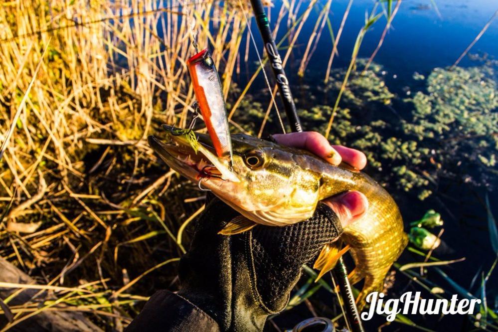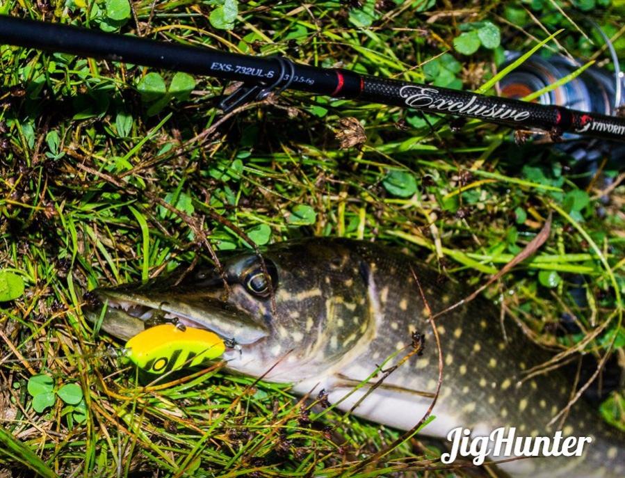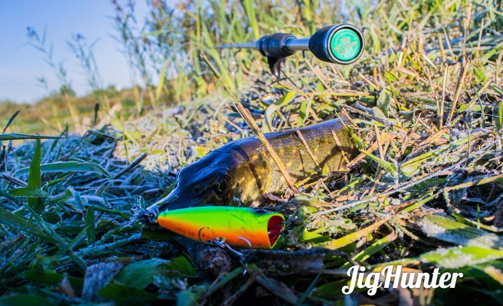 Сегодня слышу будильник в 6, просыпаться просто в падлу. Беру телефон, захожу на сайт погоды, а там слово страшное упомянули. «ШТИЛЬ»!!! Это естественно сон прогнало, и в темпе побежал опаздывать на первый автобус, что довольно удачно получилось. Короче добрался на следующем, дошел к водоему а там пи…ец… Места где я ловил щуку просто скрылись с лица земли, точнее это лицо земное выперлось с воды. Нашел что-то более вменяемое для поверхностных приманок и приступил к тесту фаворита exclusive twitch Special до 20 грамм. В общем, хотите - верьте, хотите - нет, но это просто шикарный твичевый инструмент, который сразу же лег в руку, и отпускать его не хотелось. Легкий короткий бланк плавно нагружался при забросе всеми известного йозури 3д поппера и стремительно загонял его на такие расстояния, которые только достигались джиговыми длинными прутами. При этом на проводке он сохранял жесткость и хорошо приводил приманку в действие. С моим ростом (было 176см в том году) 602 модель четко протвичивалась классической стойкой (эт тип когда ноги на ширине плеч и палкой делаешь движения как будто себе по яйцам замахиваешься но бить не решаешься, так как знаешь что к добру это не приведет) Так что советую, тем кому надоело мучатся с универсалами при ловле рывковыми проводками, палка - огонь. На второй проводке я увидел выход, а на третьем добрал зубатую. Как бы палка не нравилась, но на ультралайте еще висел нано джерк, который просто ради интереса хотелось помакать. На первой же проводке красивый выход, не хуже чем на поппер и пошел я ее выгуливать на фрикционе) Это было шикарно))) Расскажу о приманке. Маааленький джерк в медленно тонущем исполнении. Я поставил яркий цвет, чтобы было удобно за ним следить. Полет у него отличный, как и в любой приманки этого семейства. Тонуть я много ему не позволял и вел на заглублении около 20 см. Очень интересно он себя вел на разных проводках и щука замечала его с далека. Резким рывком бросалась к нему, что было хорошо заметно, притормаживала перед ним, и выбрав момент красиво била. ВСЕ ЭТО НА ГЛАЗАХ ПРОИСХОДИТ)) сколько ловил слайдерами, такого не было ни разу.