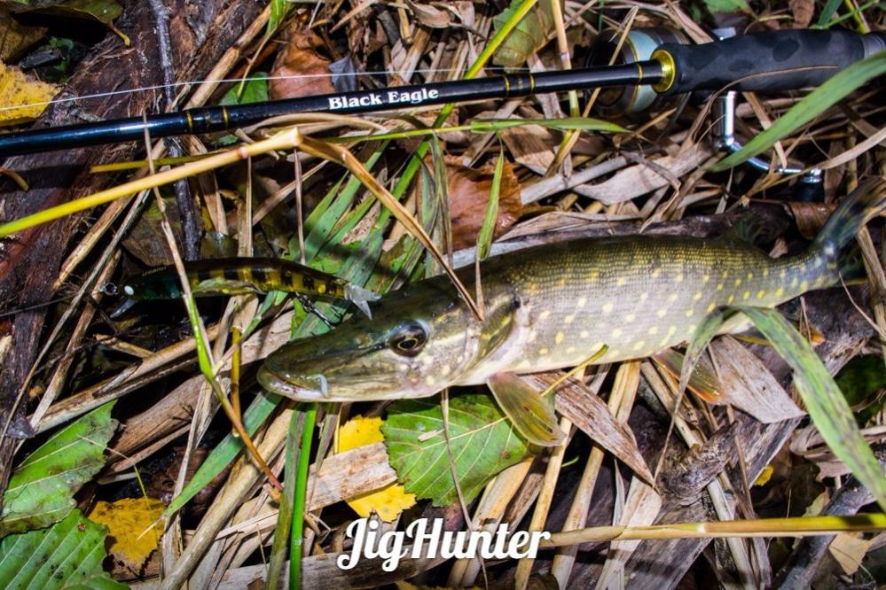 Иногда как-то не стоит.. вот не стоит душа на обыденное и все. Вот так вчера. Я полностью отказался от джиговых приманок, не оставив в сумке даже огрызка. И подался на тестирование трех для меня новых вещей, некоторые их них я еще даже не доставал с коробки. Так как больше хотелось записать видео фрагменты для будущего обзора, рыбалка вышла немного геморной. Приехал на новый для себя водоем, глянул сквозь туман на воду, а там как на ярмарке. Народу просто валом, кто в заброс, кто троллинг по головам тягает.. в общем, весело и безрыбно как то. Немного походил, попробовал найти хищника и как то не особо радостно это проходило. Решил перейти на водоем рядом. Немного постоял и заметил выходы мелкого окуня. Так как шел я за удовольствием и за кадрами, то естественно на нем и остановился. Переоснастил героя будущего видео «Akkoi Black Eagle» нулевым попперком, самым мелким в моем ассортименте (usami snoopy) и начал подбирать проводку. Как только выровнял шлепки попперенка, на него вышел щупачек, но промазал. А за ним начали сходить с ума и окушата! Очень забавно было смотреть на данное зрелище))) По несколько полосатых проглотов бросались на поппер хуже собаки дикой)))) Набаловавшись, было принято решение поймать что то похожее на щуку! Перевязал поппер на Магсуру и начал изучать уже ее (тоже впервые на спин поставил). Как оказалось, очень забавная миноха. Мне не понравилось в нем только две вещи! Первая – хреновый заброс из-за ломаного тела, и второе – хотелось бы, чтоб немноооожко он медленнее всплывал. А вот игра шикарна…. Красивые такие, агрессивные рысканья по сторонам без всяких провалов и залипаний. Равномерная игра мне его не понравилась)) я не знаю чем нужно перехреначить рыбу, чтобы она издавала подобные движения))) Но, тем не менее, зубатую я все же им поймал, правда не равномерной проводкой! Своими движениями он напоминает мелкого щуренка.. Так что всем желающим быть инициаторами каннибализма, советую опробовать этого зверя!