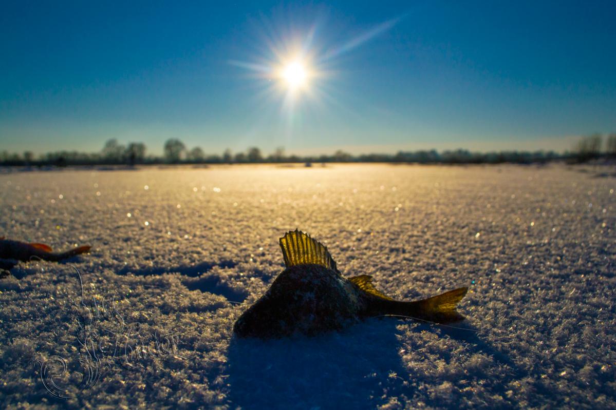 Не знаю, как было в других местах вчера, но на затоне, который посетил я, далеко все не солнечно слаживалось. Только ветер 14м/с говорит уже о многом) Но как бы назад пути нет, коль приперся, значит в бой. Первой сложностью было найти рыбу. И здесь я столкнулся впервые в жизни с неадекватной реакцией рыбы на бур. За пол дня не одна свежая лунка не сработала. Поэтому приходилось заранее набуривать и через некоторое время приходить и снимать окуней. Подобная тактика давала результат только до часов двенадцати. После, уже не имел желания сидеть под прямым ветром и замерзающие руки дали повод отправится на поиски тихих мест. Как оказалось, тихие места оказались скрыты не только от ветра, но и от рыбы. Единственное что успел немного отогреться и с новыми силами отправится на ранее найденные места. Так как путешествие по длинному старику, приносило только ершей и меленького окунька, и так приносило, что рука болела отпускать).