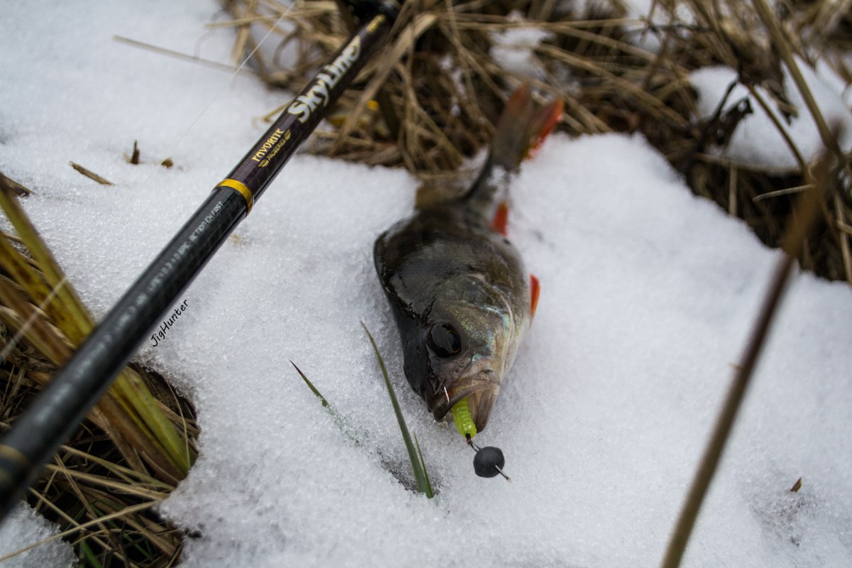 • Эти ломки просто невыносимы, особенно когда постоянно общаешься с огромным количеством рыбаков, которые любят посплетничать об уловах. Давно уже не видел выходных и тут свершилось! Правда стал вопрос ребром, идти на окуня либо судака. Но так как в береговую ловлю судака при разливе я не особо верю, то решил поделить пол дня своего времени на обеих подводных обитателей. Так сказать, чтоб не расслаблялись) немного покидав утром 16 граммовую голову, переоснастился на окуня. Место ловли было не большое, поэтому пришлось сделать акцент на подборе приманки. пол часа я тупо полоскал свой жирный арсенал силикона, пока не добрался до мини твистерка, к которому пристал первый противный, со своей теребящей поклевкой. Дал ему по морде и продолжил поиск. На второй точке опять добился внимания от хищника. Как оказалось ему нужна была активная проводка на 2 граммовой голове. Поэтому пассивные проводки сопровождались таким же вялым интересом, в то время как на отчетливой анимации, окунь буквально выбивал с рук палочку до пяти грамм тестом. В общем, это место несло в себе лишь один смысл - гарантированное открытие сезона. С данной задачей разобрался и опять на проверку реки, где гарантированно не клевали судаки. Ну а так как они не клевали почти на весь предложенный силикон, то долго там никто не задержался. В общем, если бы не окунь, крышу сорвало бы.