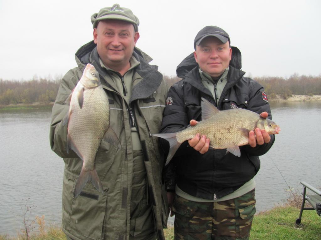 У нас стал проклёвываться нормальный лещ. Вначале поклёвки были редкие, но потом всё быстро наладилось, и лещ стал ловиться хорошо и регулярно. Нам быстро надоело набивать садки лещом и мы опять перешли к фотосессии. Местные рыбаки которые пришли посмотреть как мы ловим леща наконец-то сфотографировали нас вместе, ато мы как-то всегда на фотках поддельности, ну некому нас сфотографировать.