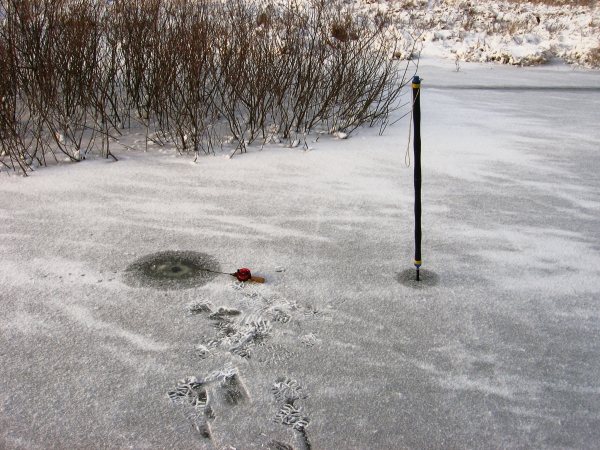 . Лед пробивался от одного сильного удара пешней - 4см.