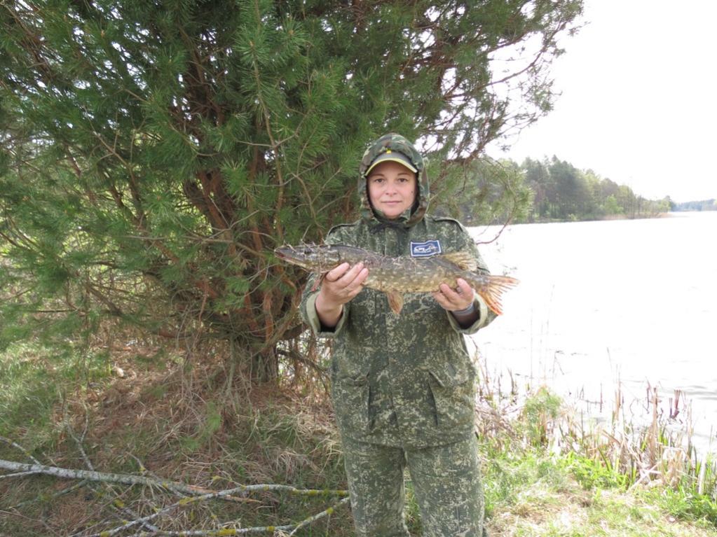 Потом переместились на другие акватории , но там я поимел только один сход . Ближе к обеду вернулись обратно . Щука опять проявила активность . Сначала я поймал пятнистую красавицу (37 см ) - отправил подрастать . Потом Наташа поимела поклёвку "паровоза" ( скорей всего карпуши ) и после недолгого перетягивания каната он благополучно отбыл восвояси .:D (Надо сказать , что ловили на UL) . Вскоре у Наташи наконец клюнул "крокодил" - спиннинг в дугу , треск фрикциона , звенящая плетня . Я думал что сейчас сломается спиннинг :o Но он выдержал такой агрессивный натиск , а вот щуку доставить на берег не удалось - сошла . Но утешительным призом стал неплохой окунь , клюнувший буквально на следующей проводке !