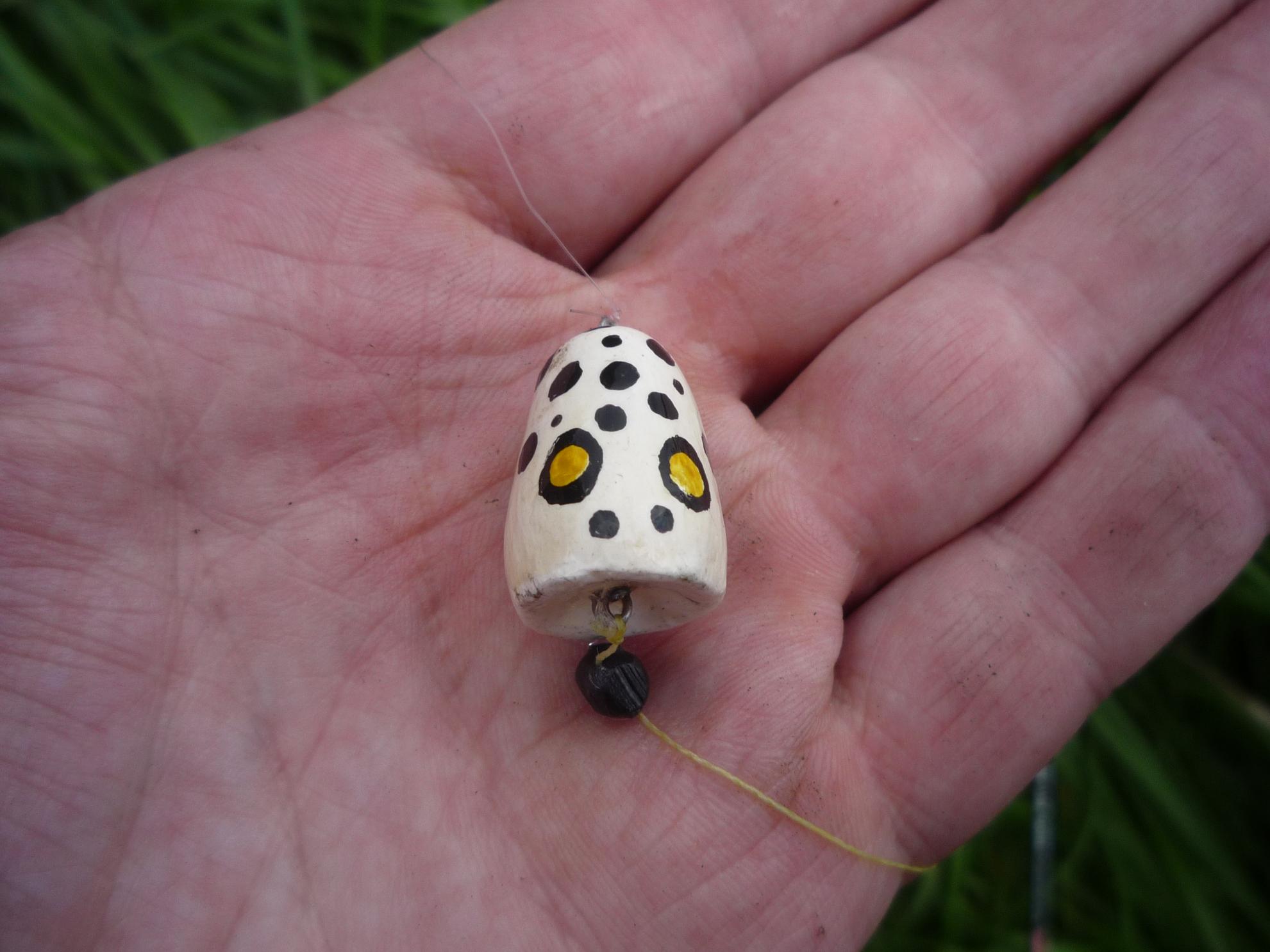 В четыре утра уже не спалось и в голову лезли разные планы на день грядущий.:o Подумалось, можно взять эту рыбу как в детстве - на перетяжку. Но есть одно обязательное условие - нужен напарник, а его как раз в будний день найти трудновато, ежели бы выпить, то тогда пожалуйста, много желающих.:D И тут пришло на ум что где-то в нете смотрел ролик как ловят краснопёрку на спиннинг при помощи такой прилады как попла-поппер. В машине нашолся джиговый спиннинг тестом от 4гр и плетнёй потоньше. Далее был изготовлен опытный образец попла-поппера, в готовом виде он выглядел так на поводке к нему прикупил небольшой твистер, обрезал хвост. Как описано в ролике.;) После обеда решено было двигать на испытание. На всякий случай прикупил баночку опарыша. На месте ловли было волнительно на душе, чуял что рыба есть, но сработает "устройство" или нет. И вот делаю первый заброс веду очень медленную проводку вижу что рыба бъёт в твистер, интересуется, но не зацепляется.:( Меняю твистер и на крючок отправляется парочка опарышей. Заброс, медленная проводка, поклёвка и вот первая рыбёшка на крючке