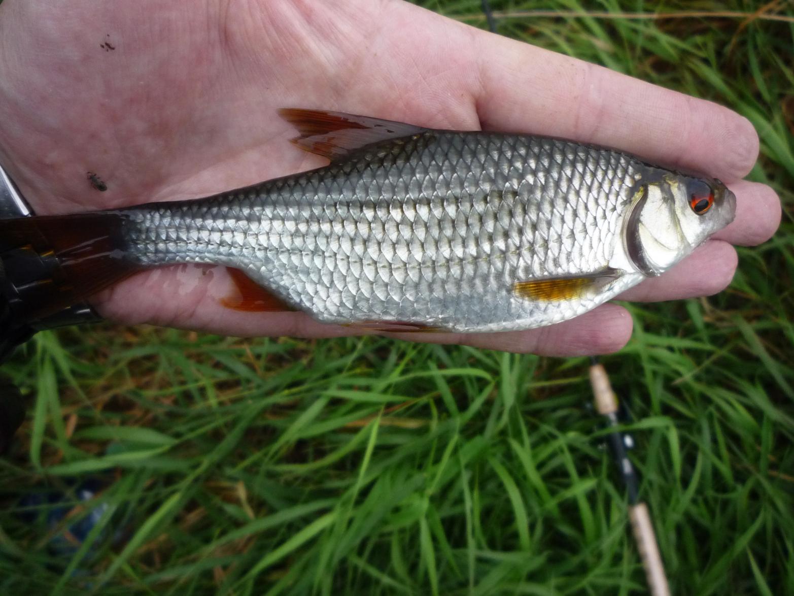 Вчера оказывается заразился;), я думаю меня поймут те, для кого поклёвка рыбы кой што значит в жизни :o Погода сегодня была как будто небо прорвало :p Тем не менее решено было повторить занятие и удалось вырваться на часик - другой на реку. Сначала дождь моросил, и рыбка откликаласьбыли сходы и поклёвки мелочи, но в основном улове присутствовал вот такой размер
