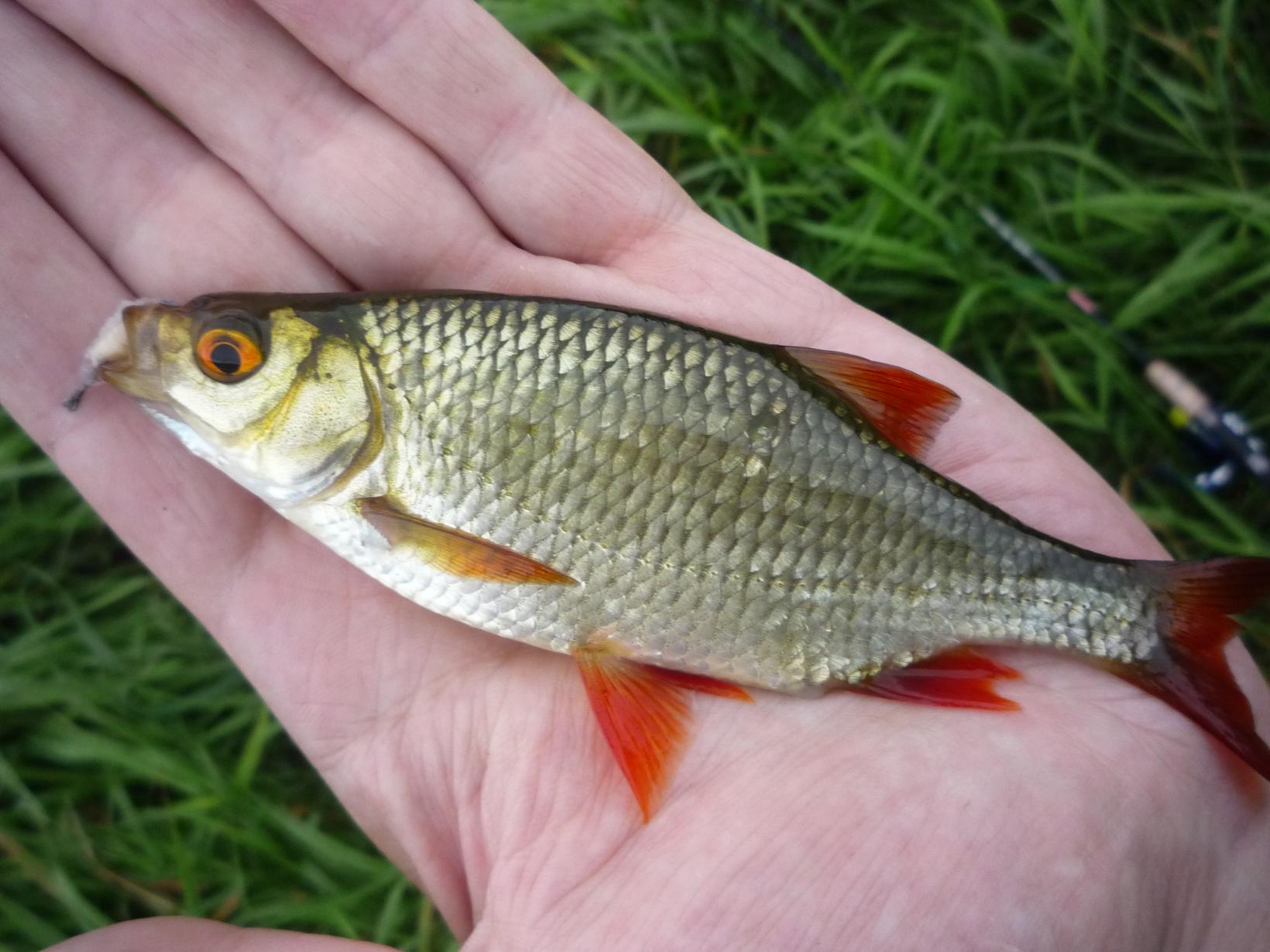 Хищные снасти в машину,удочку и прикормку в лодку. Закормил окно в оставшихся водорослях и минут через 15 "пошло". Равномерный клёв был до самой темноты. Работали опарыш и перловка (взятые у друга на берегу). Крупная уклея, средняя и шикарная речная плотва и краснопёрка (заставляющая вздрагивать и браться за подсачек),живцовой мелочи было штук 20 (пошли в ведёрко для следующего знакомства со щуками). Заскочили на веселуху и четыре карасика около-500 граммовые.Около 17-00 пошла одна отборная краснопёрка.