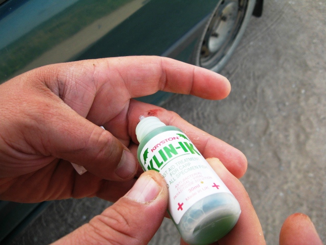 5. В случае, если у Вас так-же замечательно укомплектована машина, как у меня, т.е. отсутствует аптечка, берём то, чем лечим карпа, и начинаем лечить себя