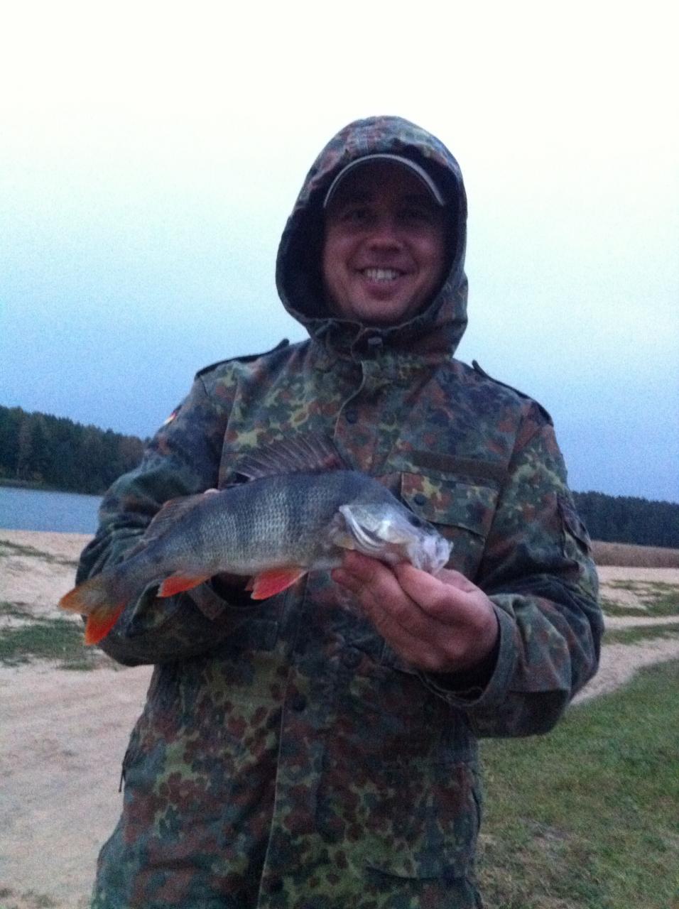 Вчера погода была пасмурная , но все равно дома не сиделось . Решили проехать по малым водоёмам района и попробовать ловить хищника микроджигом . Первым выбор пал на озерцо деревни Шиловичи . Приехали около 15:00 . Я использовал маленький силиконовый виброхвост ( 1 дюйм ) прозрачный с крупными бардовыми и серебристыми вкраплениями . За полтора часа - 100 граммовая щучка и пару мелких окуней , которые были отпущены . У товарищей - у кого лучше у кого хуже , но ничего трофейного . Вода достаточно прозрачная , но трава не опала , почти при каждом забросе головка ( 2 грамма ) забивалась тиной и травой , что очень раздражало . Поэтому было решено переехать в Верейки . Приехали к верхнему озеру около пяти вечера . Возле дамбы вода была похожа на зелёно- бурый кисель . С трудом нашли более- менее чистое место . И вот результат : Нажмите на изображение для увеличения.
