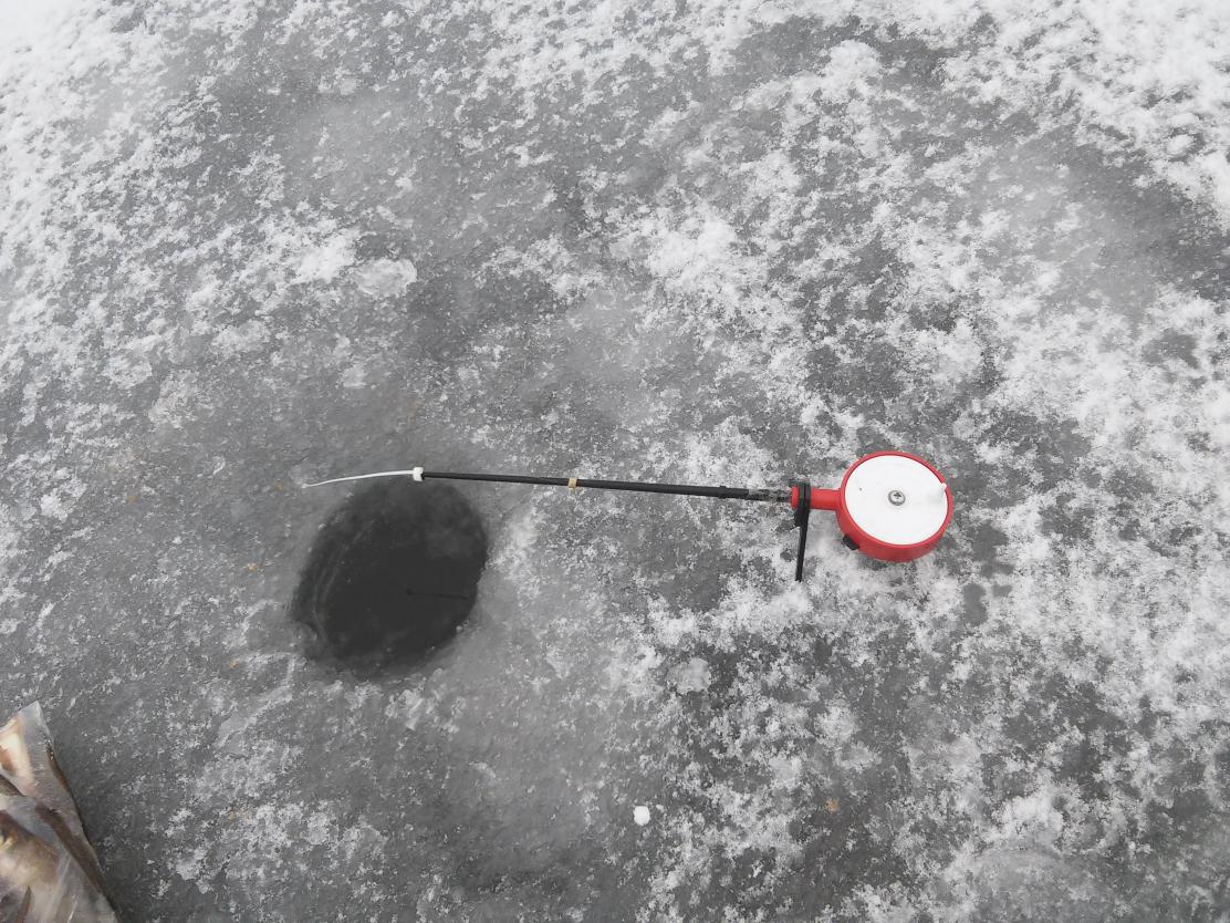 Решил и я не испытывать судьбу и забурился недалеко от мужика, который спас моржа. Закормил примерно 6 лунок и одну чью-то старую. Лед уже был примерно 5-7см и начал набирать воду и менять структуру. Тем более вдалеке в районе моих соток сидели рыбаки и не было резона туда идти в 13,00 портить себе и им настроение, пугать рыбу. Тем более не за рыбой иду, а отдохнуть. Мужик свернулся уже в 14,00 и пошел домой. Я словил 1 микроподлещика из новой закормленной лунки, а остальные 7 нанолещей и 1 окушок были пойманы с 16,30 до 17,30 из закормленной старой лунки. Или рыбу распугал или она любит старые лунки и ранний закорм, но имеем то, что имеем. В принципе, для открытия, нормально я еще словил. Мужик за весь день взял штук 12 нанолещей. Рыбаков было в моем поле зрения человек 15 - не густо, все-таки будний день.
