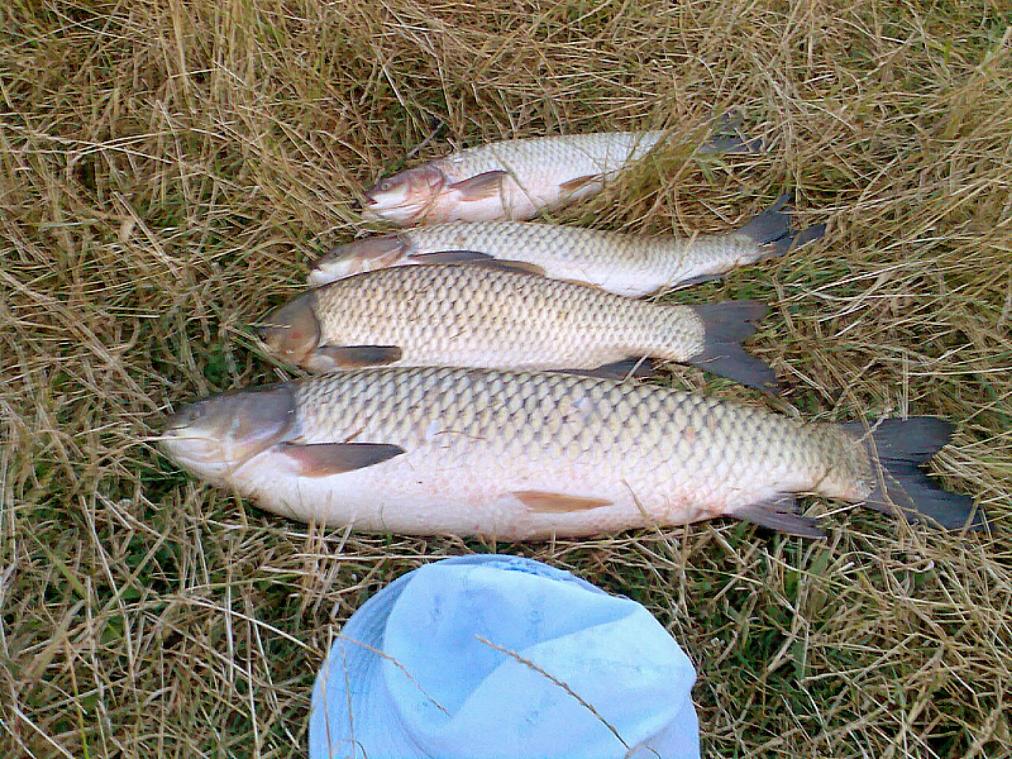 ID:	3684132Ловил Амуров на Украине.Южный Буг.Амур дикий.От нашего отличается.Нагулянный.Ловил дальним забросом в проводку.У поверхности воды.На кузнечика.Из интересного-когда обернешь поплавок блестящей фольгой,клюет чаще.На солнце блестит,и он интересуется. Самый большой 9кг самый маленький 2.5кг