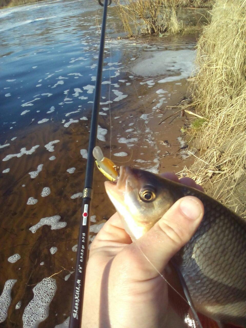 ID:	3879583 Первые по настоящему теплые весенние дни и первые поклевки язя на малой реке. Сработали воблерки, первого взял на асакуру с-хорнет 4,2, второго на камиона в др версии.