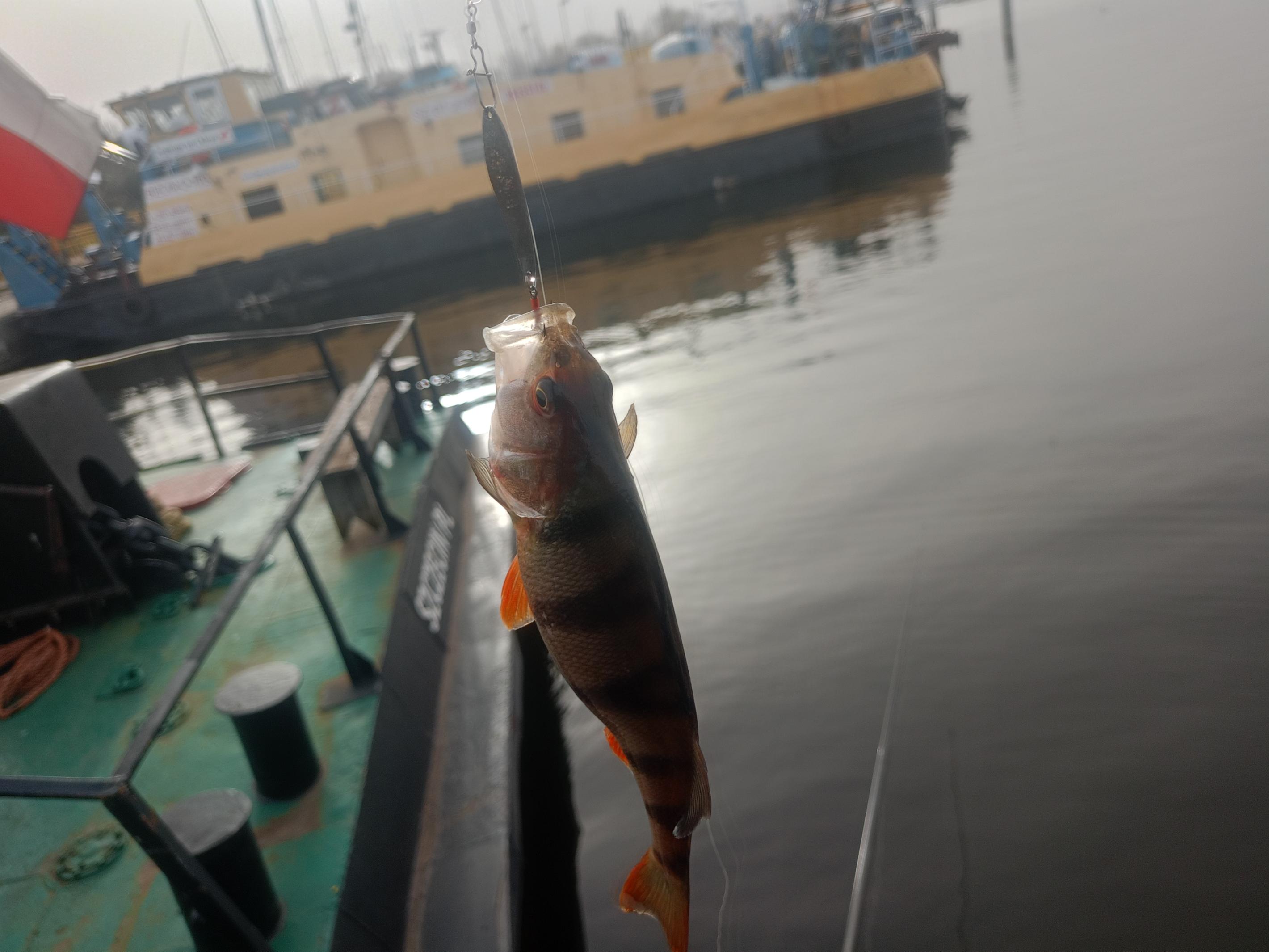 Размеренно поклёвывает та же золотая рыбка. О! Неужели кабанчик клюнул! Но, нет, это всего лишь монстропёрка, граммов на 200,