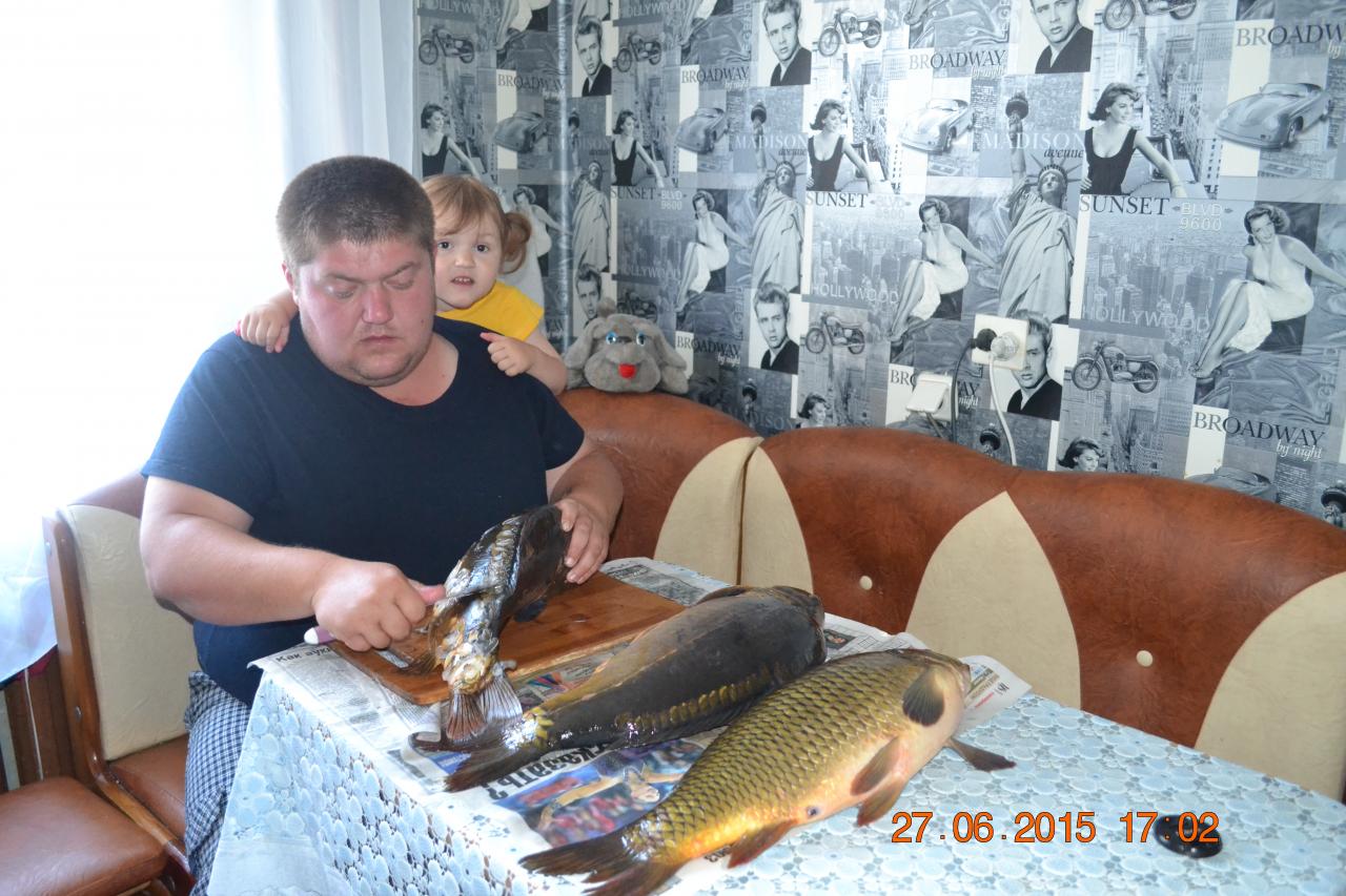 Был у кума на даче недалеко от Синявки и заезжал туда вчера с Серегой batyax11 с позднего утра и до обеда . Одна поклевка на поплавочку - карпик в р-не полтора кг. сошел под самым берегом . На фидер - так же одна мощная поклевка ( была мной благополучно прошляплена:oops: ) , ну и несколько вялых поклевок красноперки . Кто был с ночи или с раннего утра - у тех рыба в садках присутствовала . Мы же , приехав в самый солнцепек , довольствовались лишь наблюдением за карпами и амурами , которые флегматично грелись у самой поверхности воды среди веток прибрежной коряги и на прысмаки , подсовываемые им под нос;) Серегой , никак не реагировали . Возможно жара , резко упавшее давление и приближение послеобеденной грозы повлияли ...Последний раз редактировалось Rammstein; 15.05.2016, 06:48.