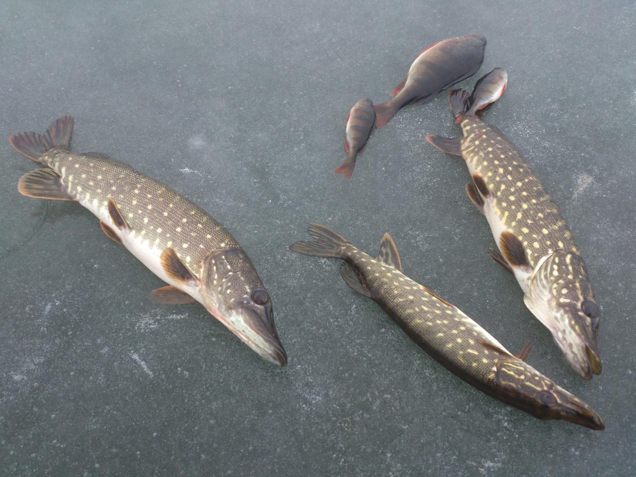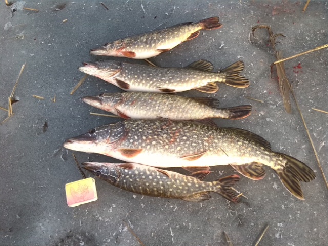 щук 800-1200 уехали и 3 были отпущены.Окунек тоже брал но мелкий и чуть больше.