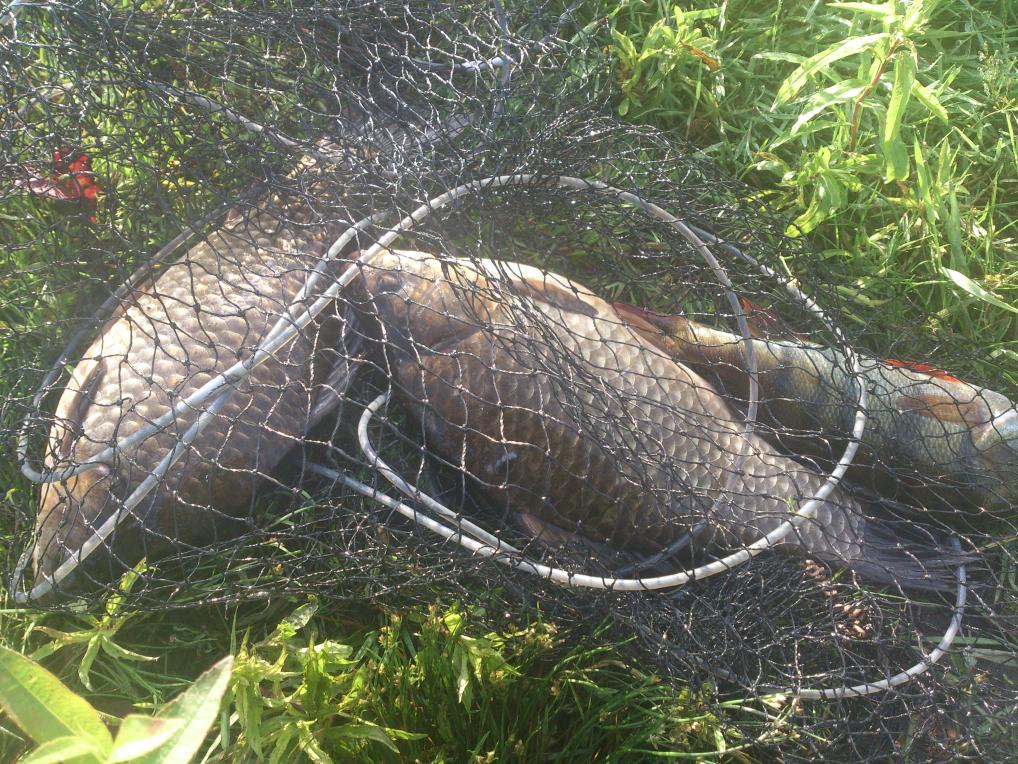 Также словил сеть метров на 100. Освободил одного карасика-красавца. Сам тёмный, плавники ярко-красные, дикарь. Не знал, что сеть так хорошо горит ))