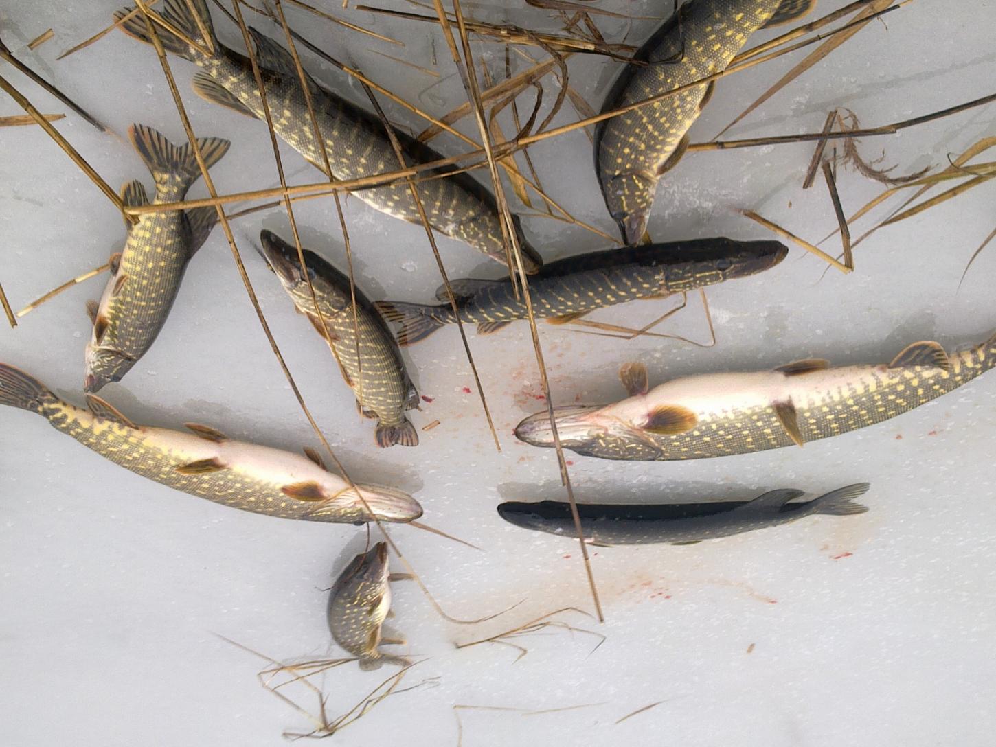 На самом деле,у нас(на Палачанских разливах)-таж картина в кустах и тростнике-мелкая снежная присыпка,на чистом голый лёд...Сообщение от Паша + Посмотреть сообщение... поставил 7 ставок (больше не было живца). Щука ждала меня и через 15 мин. первая взяла. В итоге 4 сработки-3 щуки