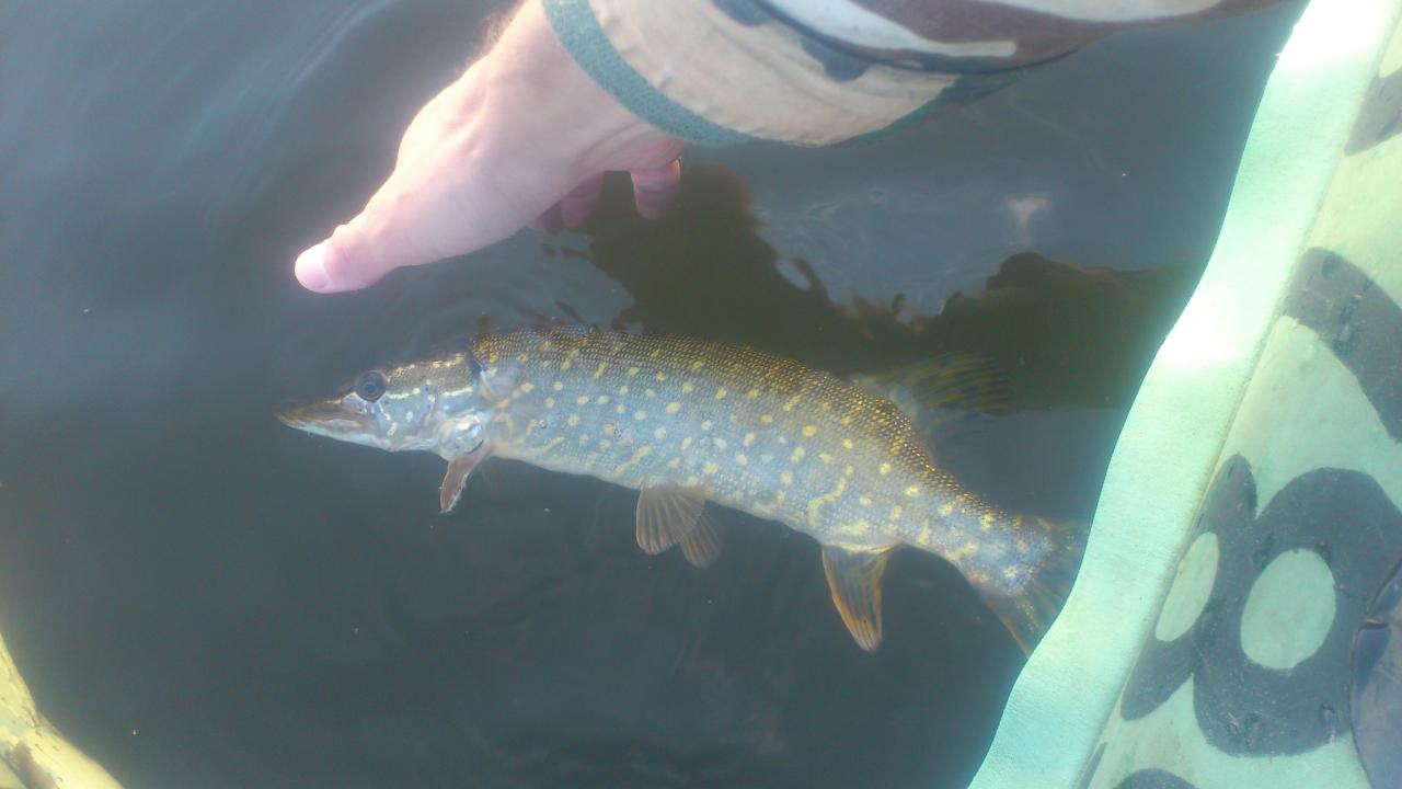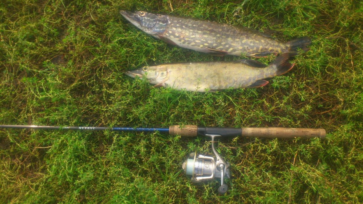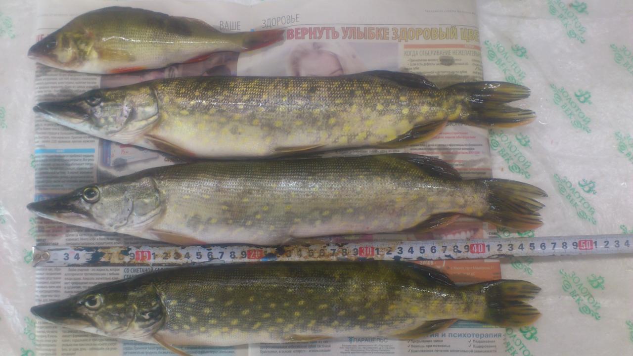Было две щучки, одна отпущенец, вторая 39-40 сантиметров примерно.