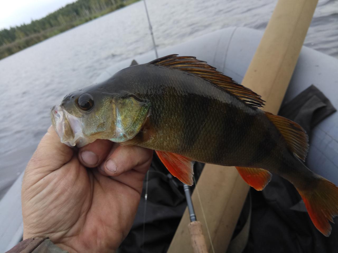 На одной точке нашел пару окушков, два взял сразу, третьего добрал сменой вертушки.
