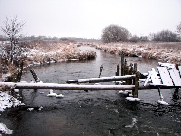 Посетили те же места с Вадимом и Филимоном... Все, после рассказов про вчерашний клев :(. Ставок много, но видал и поболей :). Упирались в блесну и балансы. Наиболее выдающиеся результаты показали на карповнике (?) - в сумме с десяток полосатиков до ста грамм на всех. В канавах, в корчиках клевал вообще мизерник. лед нормальный, но на русловом канале - 2-3 см и промоины. Сработок не видел, а Вадик видел на льду - 4200 гр. Хаски, жаль не встретились, мы заезжали со Мгле.