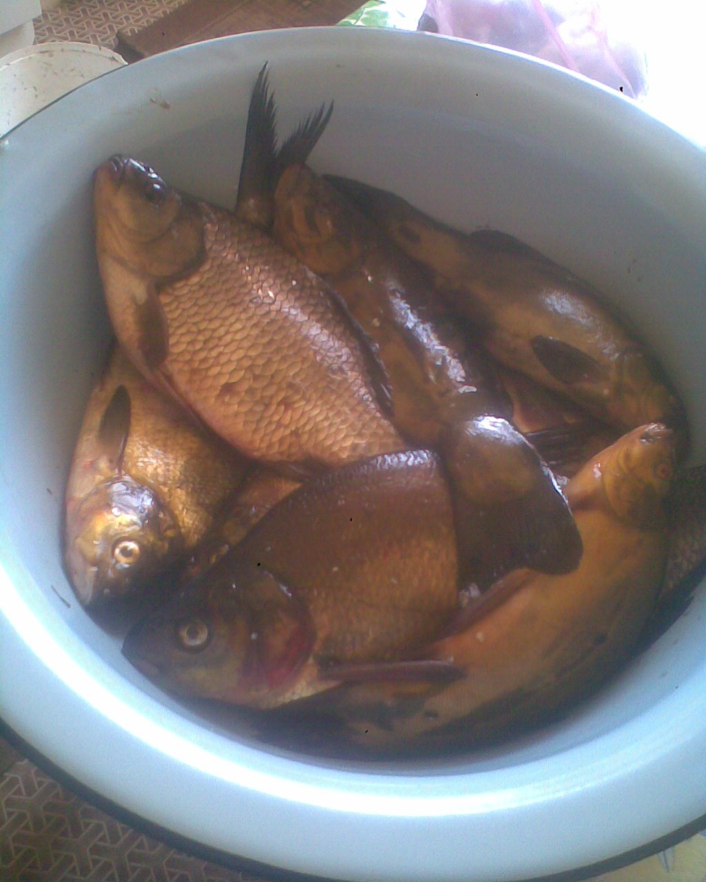 . В понедельник в 10-00 (на работу:() уехали. Результат: линь - 4 (400-700 гр.), лещ - 1 (1150 гр.), подлещик - 4 (400-600 гр.), карась 1 (700 гр.) ну и мелочь (кошке). Общий вес "чуть больше нормы":oops:.