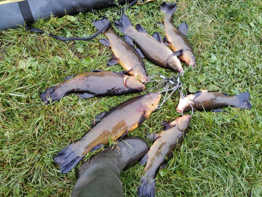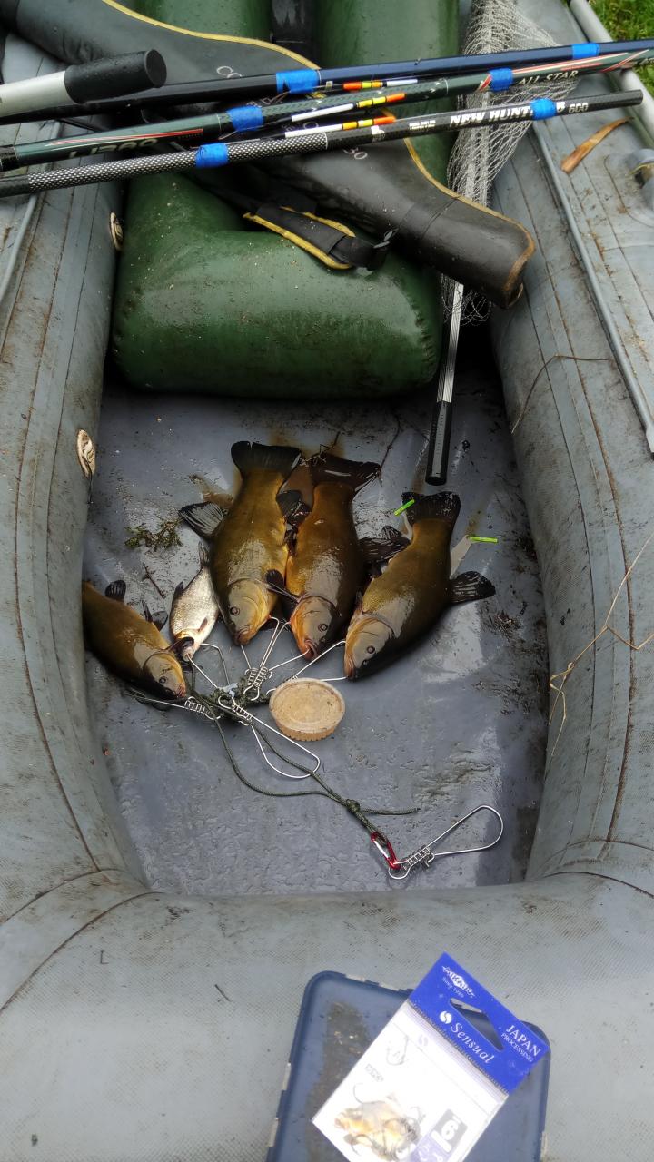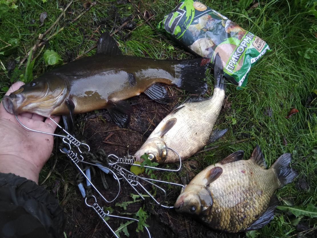 Лето потихоньку заканчивается, и дачный сезон тоже. Скоро возвращаться в Минск, поэтому решил еще раз перед паузой в рыбалках посетить разлив. Если коротко: карась под 1 кг, карась грамм на 650, неплохой подлещик , две фанерки и линек грамм на 350. Это то, что забрал. Плюс сход какого-то монстра (по итогу зашел в траву перед мостком и там отцепился) , пару сорвавшихся линьков грамм по 300 ( надо бы из-за травы подсаком пользоваться, но лень !) .Ай, пусть растут ! Потом штуки 3 отпущенцев-линей из-за малолетства ,ну и супер линяра , который на фото:D:D:D. Потом стало холодно. Змэрз як на морском дне, поэтому сказал "Хватит !" и поехал домой.2 Фото