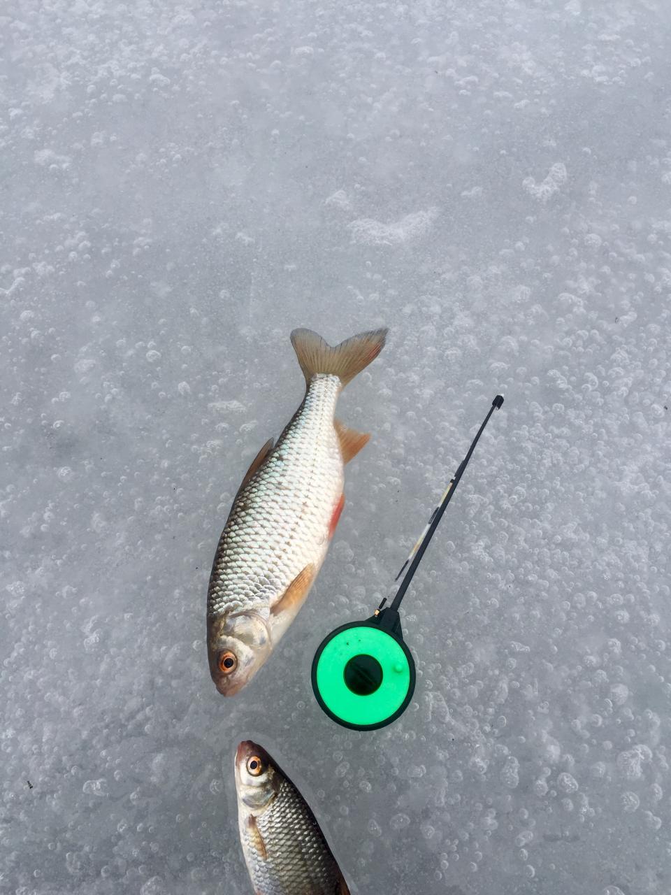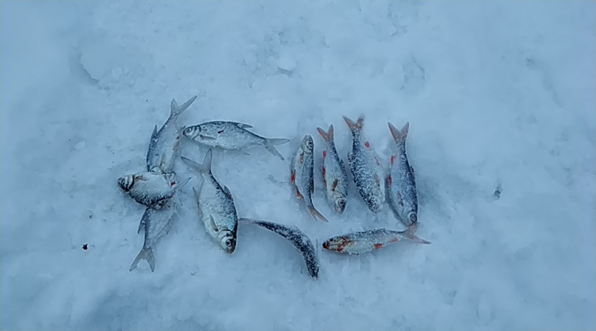 Открыл для себя зимнюю Крыницу вчера. Первый день отпуска. Возле Ждановичей. Народ сидел на белую рыбу, а я взял ставки. С 9 до 17 пять сработок. Четыре холостые, а одну щуку подтянул к лунке и поторопился, итог обрез поводка флюрик. По белой - плотва клевали с 11 до 13, но очень много холостых. Ловил и на крючке и на мормышку. Мотыль. RS зимняя. Но зато поймал две плотвы на гвоздешарик. Пытаюсь научится на безмотылку ловить.