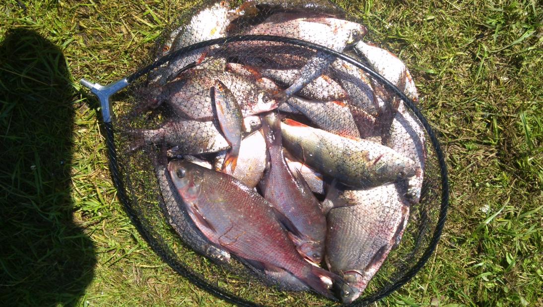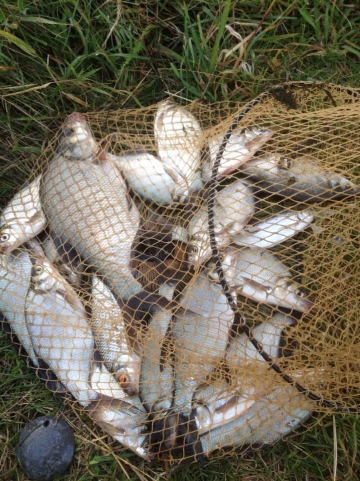 • Вчера с 4 и до обеда)) штук 15 ладошечных подлещиков сразу топил.. 20 плотвичек забрал домой, в кадр не попали, сильно побились в садке..