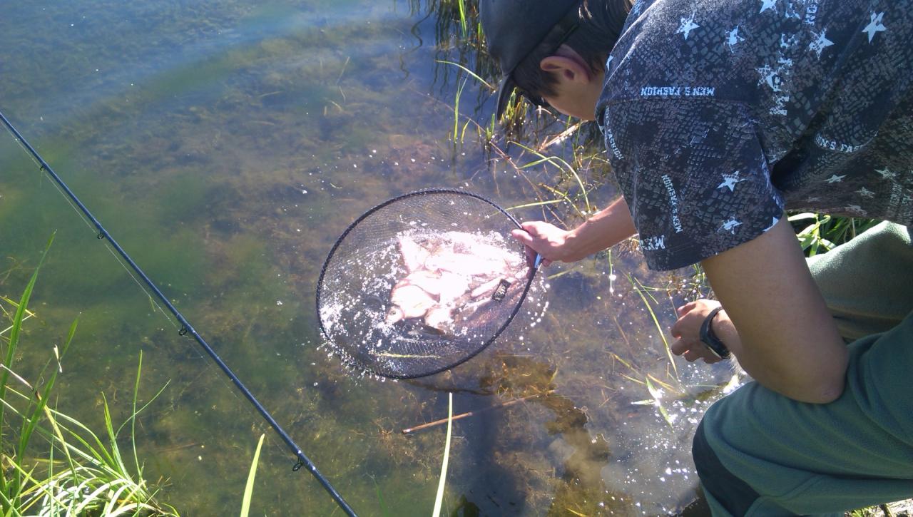 Была поклевка как нам показалась трофея. тягались с ним минут 5-7, работа фрикциона, все дела.. когда подтянули к берегу оказался полкилошный подлещик забагренный за спину) конечно же он сошел, но доза адреналина получена!