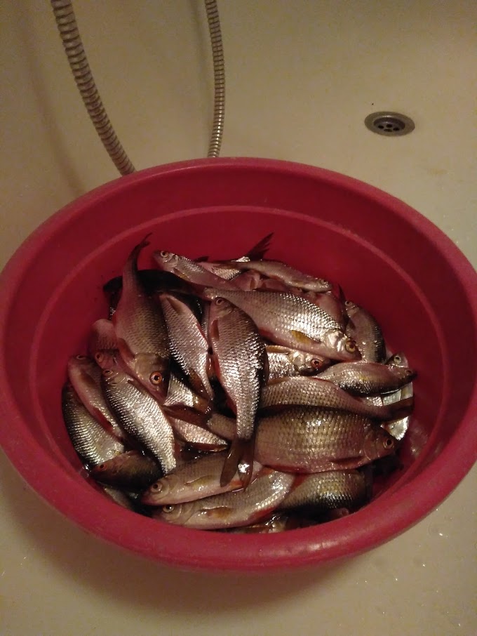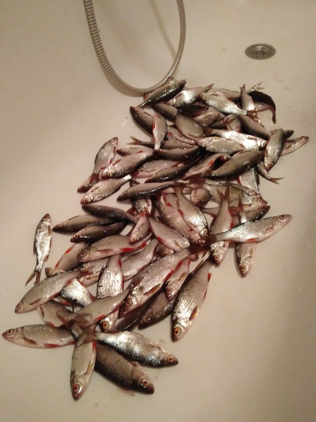 • Сегодня опять Криница. С 7.15 до 13.30. Снасти, прикормка те-же, что и в предыдущем отчете. После стартового закорма рыбка не раздумывала , а сразу начала уверенно клевать. Все предложенное меню: макароны, кукуруза, перловка и опарыш сегодня плотвичка принимала с благодарностью, но на перловку клевала более крупная плотва, вся товарная, на нее и ловил, так как от добра добра не ищут. Уехал рано, рыба клевала, но уже надоело, весь процесс уже стал похож на рыбозаготовку, а это уже не интересно. Рыбаков было мало, хотя погодка сегодня порадовала по-летнему. А вот и результат сегодняшней рыбалки Нажмите на изображение для увеличения.