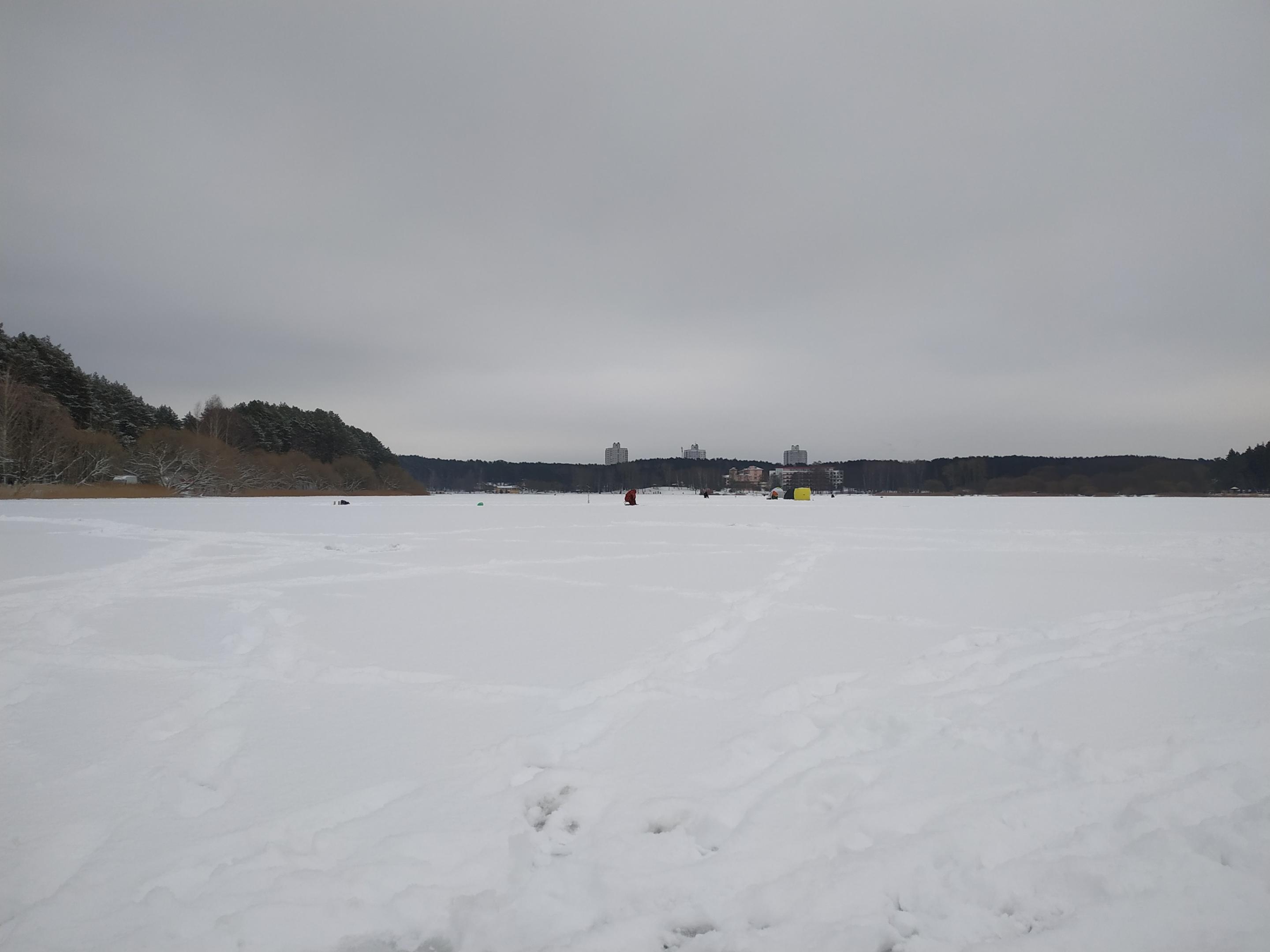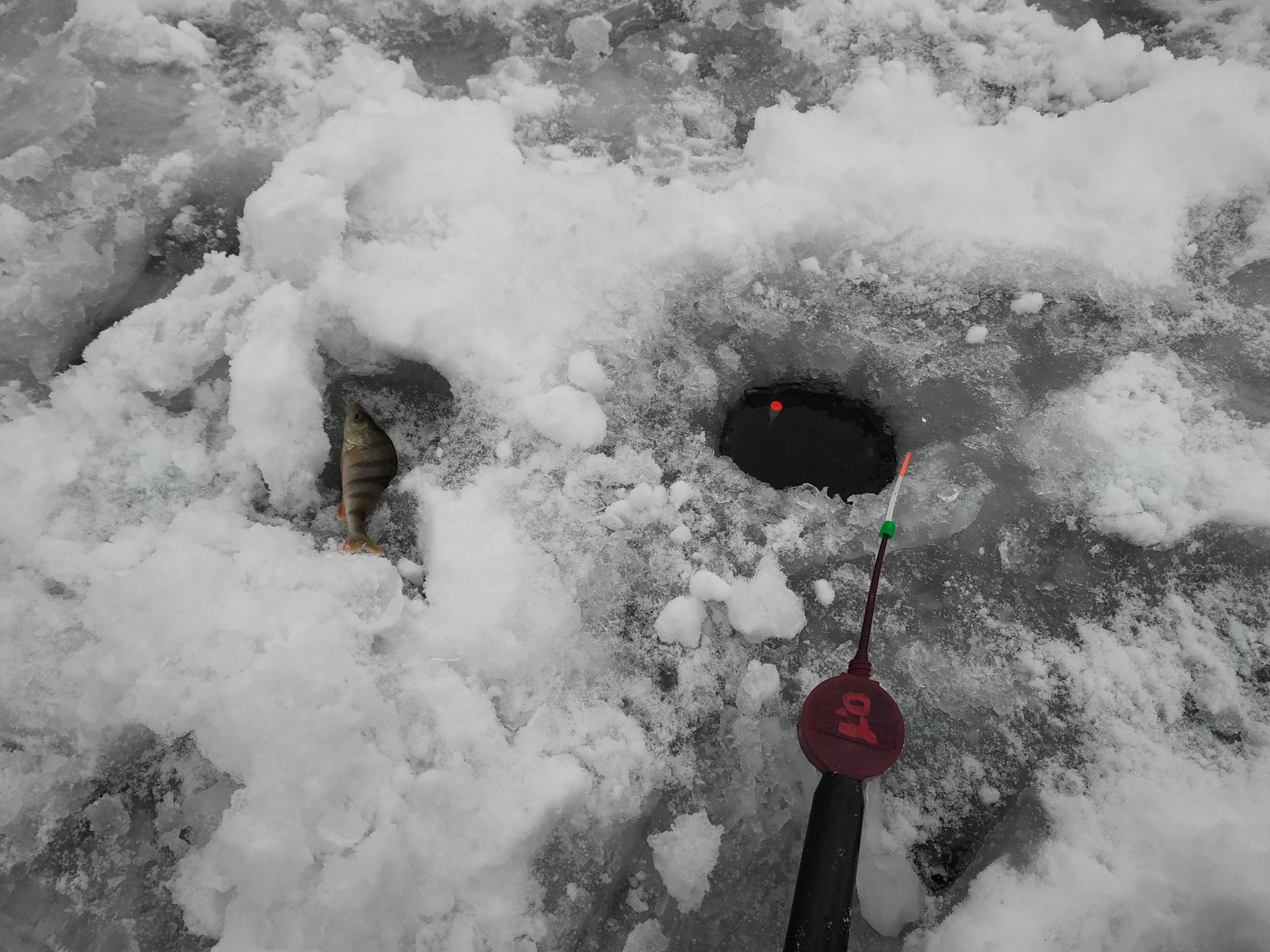 В общем, дети кувыркались в снегу, а я безуспешно переходил от лунки к лунке и пробовал различные снасти.