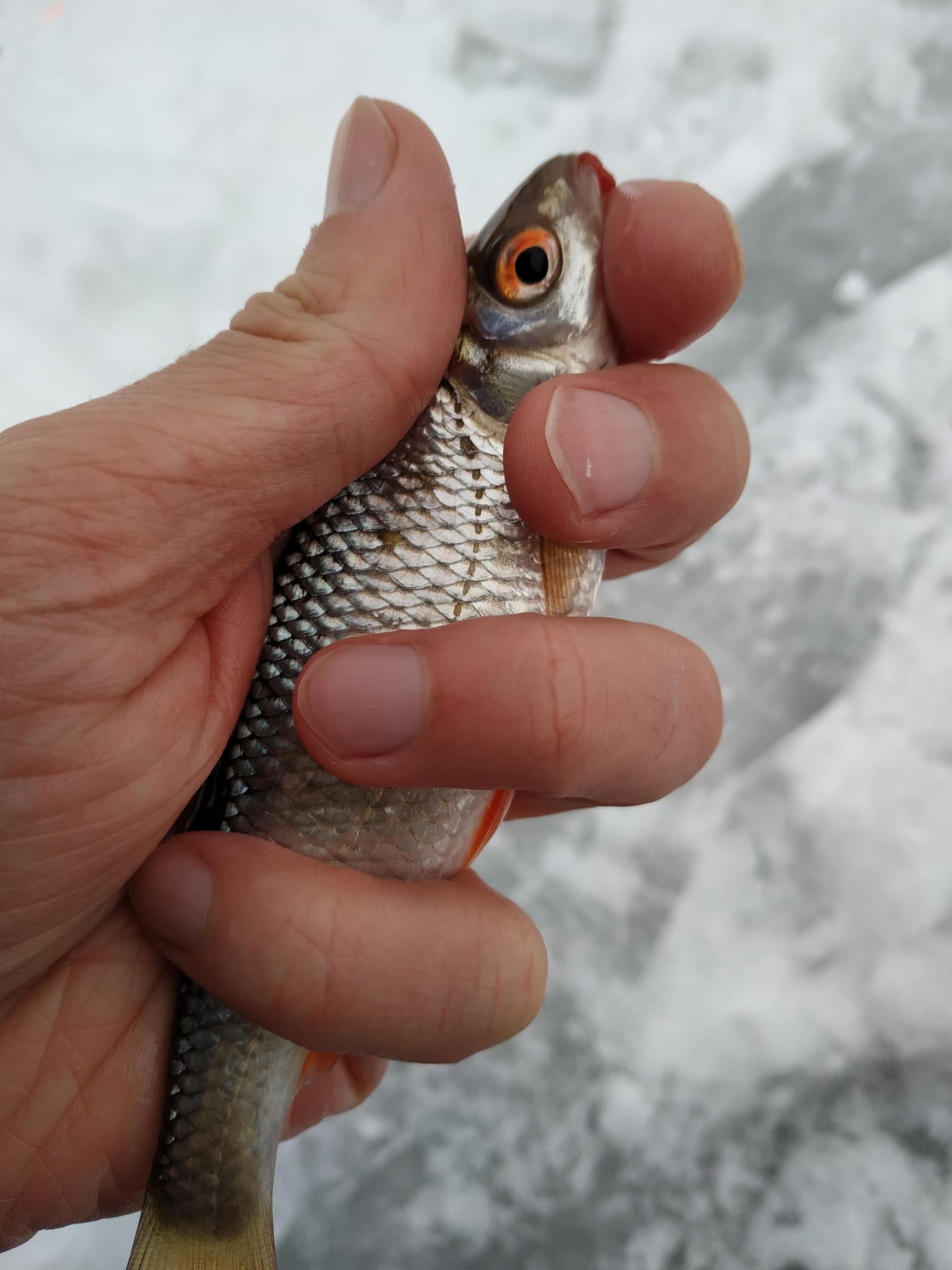 Сегодня Криница с 9 до 16. Ловил на глубине 3,2 м, закормил 8 лунок, добавлял лиманника, делал 8 лунок, на игру мотыль колечком-мормышка. В первой же лунке словил 8 плотвичек вподряд. Работали все лунки, серии по 2-6 рыбок. Менял для интереса мормышки белые, черные, медные, клевало одинаково на все, немного половил на микробалду, тоже клевало, немного половил на леску 0,066, поклевки были почти с первой проводки, пока не запутал, уж очень деликатная снасть. Плотва брала как на медленное опускание, так и на подъем и стоячку. На паузах почему то не было ни одной поклевки, хотя плотва это любит. Поклевки жадные, промахов практически не было. Когда уходил клевало еще хорошо. В итоге 60 плотвиц и 3 небольших подлещика, плотва конечно, мелковатая, меньше средней. Ставил 4 ставки, не клюнуло.