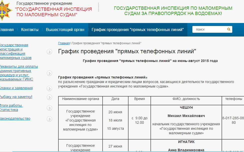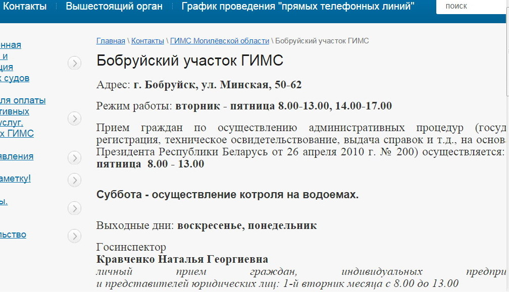 с 04.06.2015г. Минский участок ГИМС осуществляет прием граждан и юридических лиц, по адресу: г. Минск, промзона "Шабаны", ул. Селицкого 15 "А" (территория ПАСЧ-14 Заводского РОЧС г. Минска)