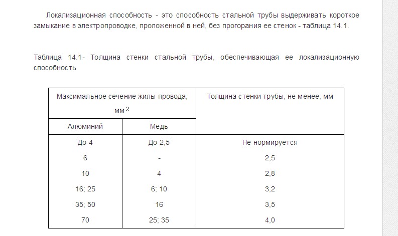 п.с. в ТКП 339-2011 (02230) Новые правила устройства электроустановок (ПУЭ) РБ, тоже стальная труба до сечения меди2,5 не нормируется.