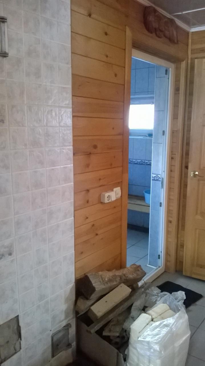 из косяков в парной. Не удобно сделал полоки. Когда кого либо паришь и стоишь на второй ступеньке с верху то головой упираешься в потолок и приходится сгибаться и млеет спина. Если стоять на третей ступени сверху, то паришь на вытянутых руках, млеют плечи.-))))))) У ANв этом плане отлично сделано, у него средний полок задвигается, а у меня надо было полоки ниже сделать от потолка..... .