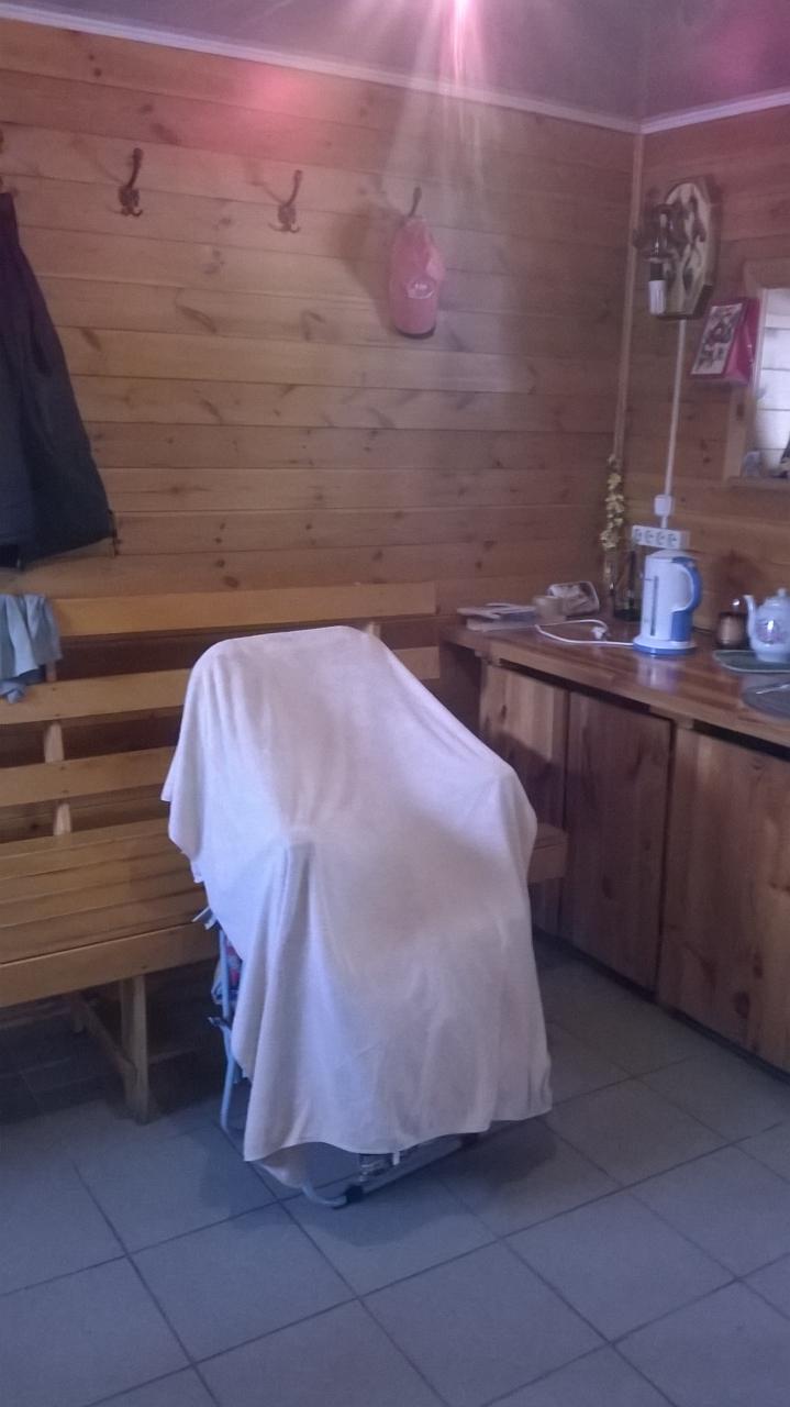 Во первых старею, люблю после парной закутаться -)), во вторых дерево на котором росли баксы высохло-))), ну и в место бассейна появилось обливочное ведро-)).