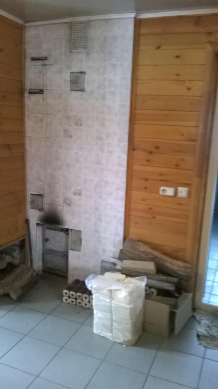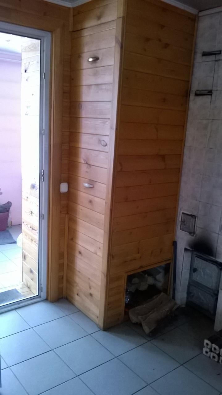 Далее попадаем в раздевалку. . Плиточка отпала на печке, так это клал плитку на какое-то :):):):):) типа "стартели.." Надо было класть на плиточный клей типа Люкс-плюс и не парится, но тоже тогда подсцыкивал, никто не мог толком сказать на что класть. Переложу летом. У этой же печки в верху есть 2 юшки. Если открыть сразу 2 то дым пойдет на прямую в дымоход, если открыть только верхнюю то дым пойдет по каналам печки.
