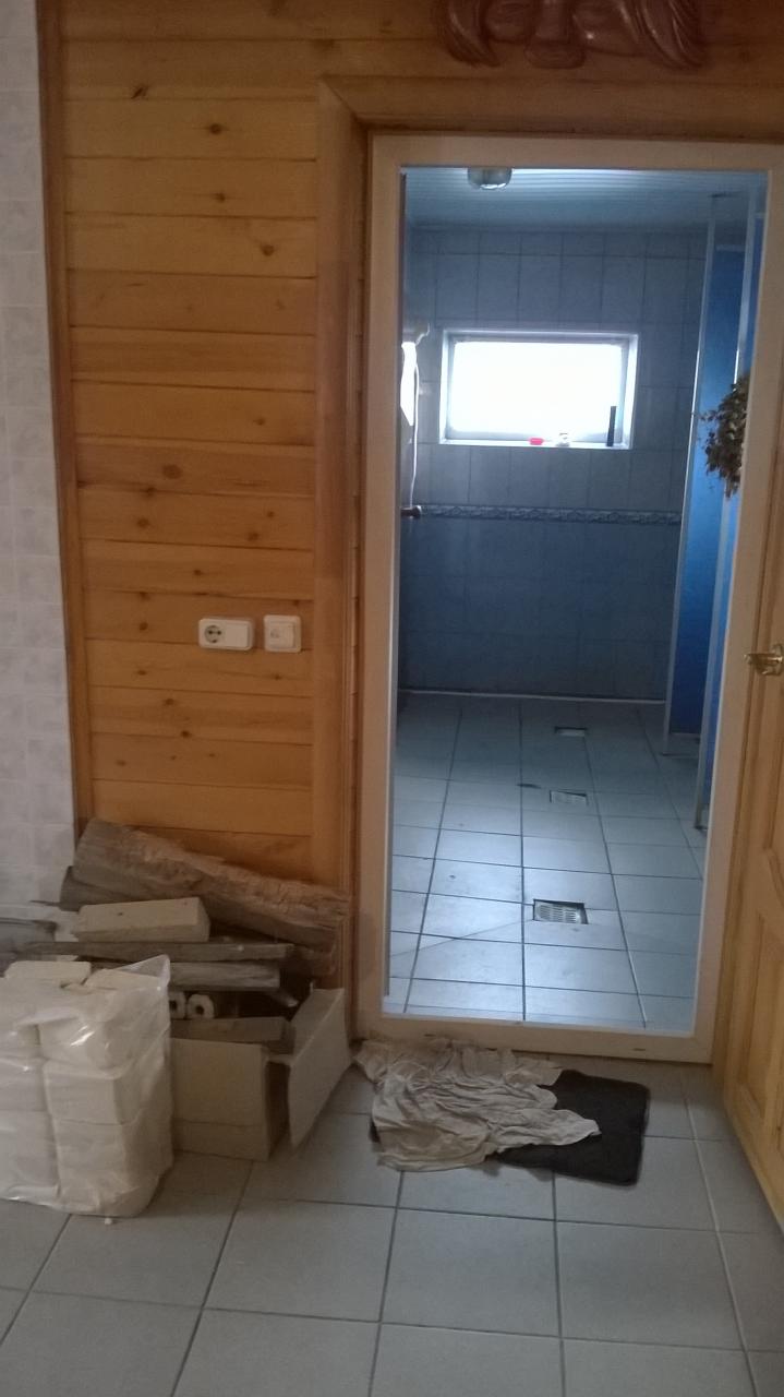 из косяков в парной. Не удобно сделал полоки. Когда кого либо паришь и стоишь на второй ступеньке с верху то головой упираешься в потолок и приходится сгибаться и млеет спина. Если стоять на третей ступени сверху, то паришь на вытянутых руках, млеют плечи.-))))))) У ANв этом плане отлично сделано, у него средний полок задвигается, а у меня надо было полоки ниже сделать от потолка..... .