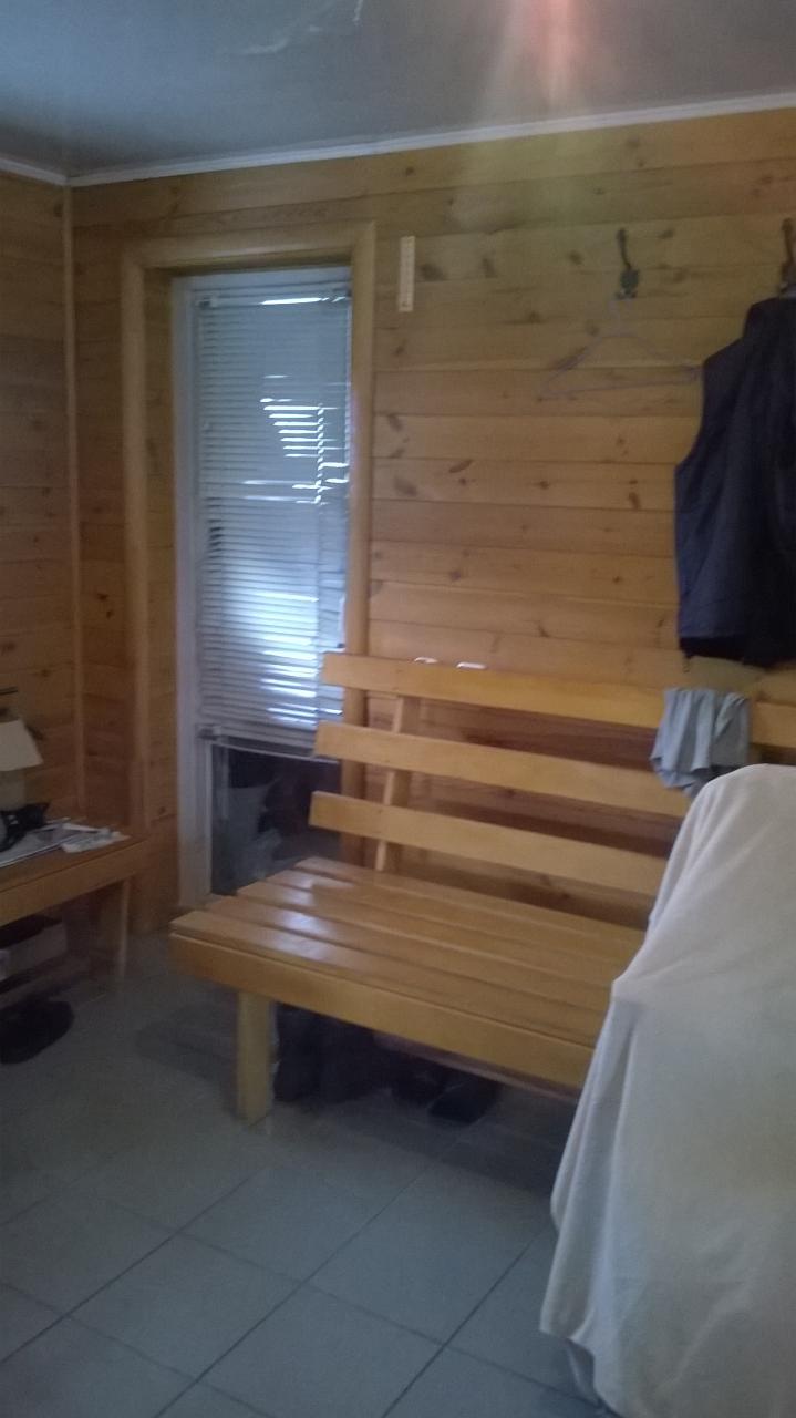 Сделал подробный фото отчет-)) и так входим в баню. Хорошее название придумал вован д "Сандуны"-)), попадаем на веранду,планировалась, что она будет открытая, но время показало, что застеклили не зря-))