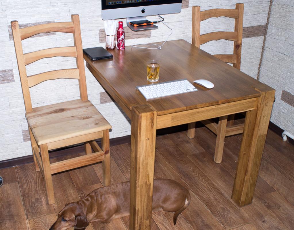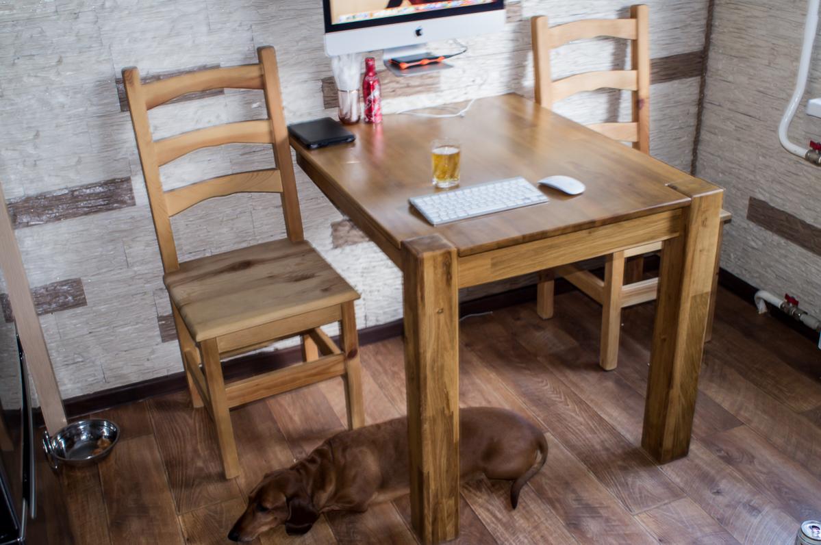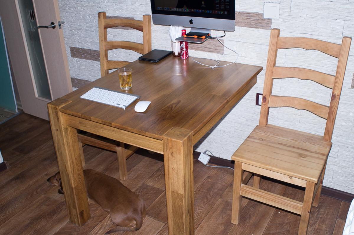 Ну и ты отдохни :) В добавок скажу что покрывал обычной кисточкой в три захода с зашкуриванием в промежутке и обеспыливанием- так даже если глаз в плотную поднести- следа кисти не увидишь-ни малейшего наплыва-просто зеркало. Можно японскую девственницу голой попкой посадить-пылинки не почиствует. Качественная штука! Этим же лаком только заколерованым в темнокоричневый покрывал наличники- Кароч- баночку на фото- смело рекомендую. Запаха ноль, сохнет быстро- по износостойкости выше написал- стол обеденный- ни следа нет. А еще вот такие стульчики-три копейки цена