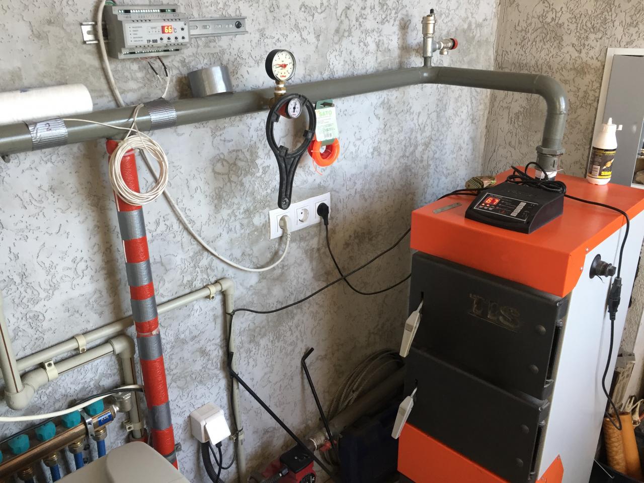 Правда слово компоновка тут уже не подходит- сейчас добавится бункер для пеллет,горелка и весной новый косвенник на 250 литров и в котельной места нет.))))