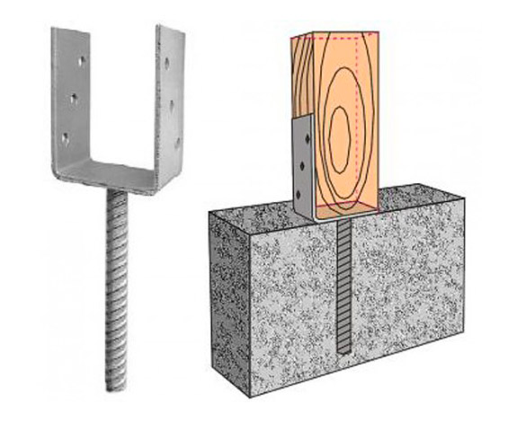 Я думал, может кусок трубы 32 или 40 в бетон, так чтобы торчала см 15. В брусе под трубу в торце дырку, надел, просверлил сбоку дырку и загнал глухарь.