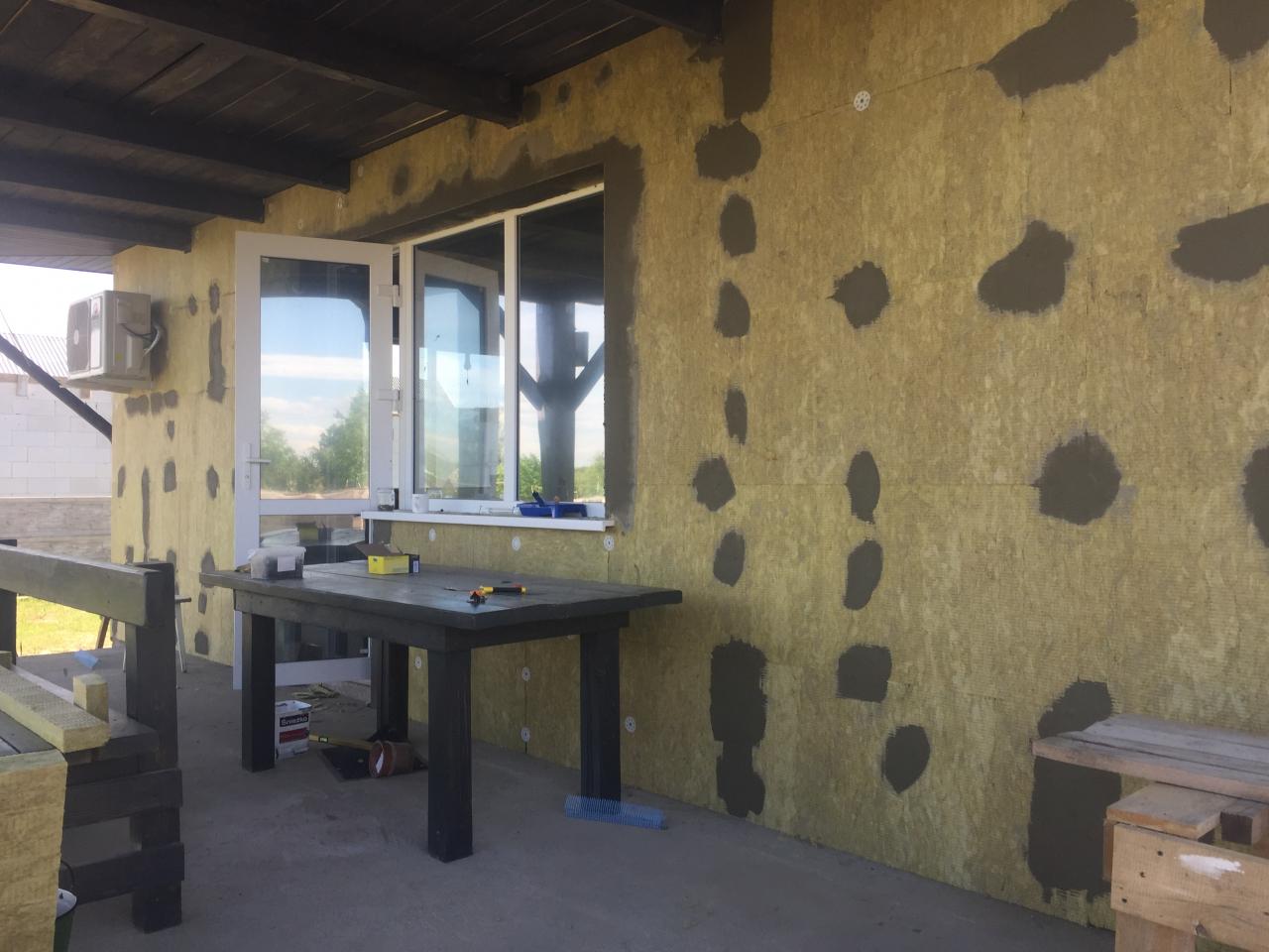Потом перекравая швы опалубки еще мокрый фасад 5 см каменной ваты