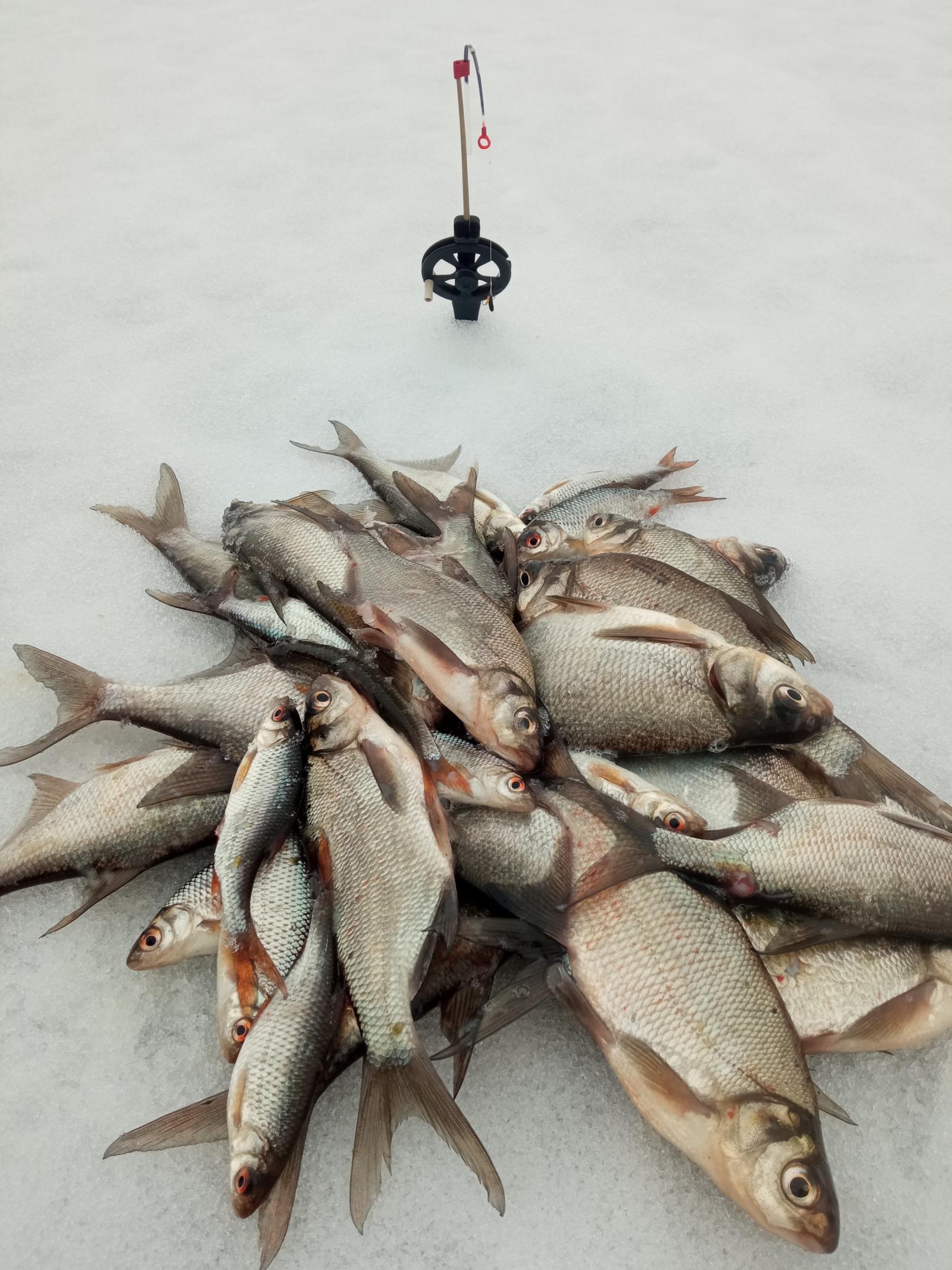 Что-то удалось поймать по своим кормленным лункам, но больше и лучше клевало по лункам старым, кормленным накануне посторонними коллегами-рыболовами и, естественно, покинутым уже ими. В огромном количестве имеется сейчас на водоёме лунок кормленных таких. Облавливать устанешь. Мечта, так сказать, стервятника)