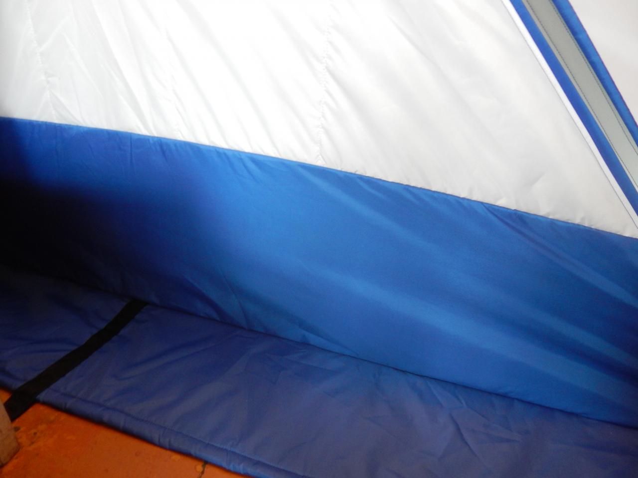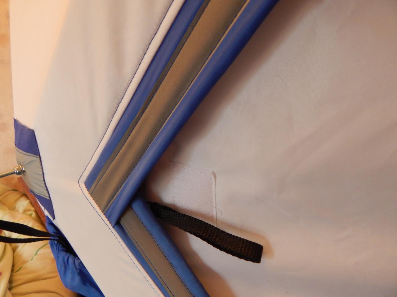 низ палатки отдельно сшит из темного с наружи чтобы при раскладывание не так мазолось(ведь учат ногой придавить середину с низу(хотя я в первый раз и так спокойно разложил на удивление